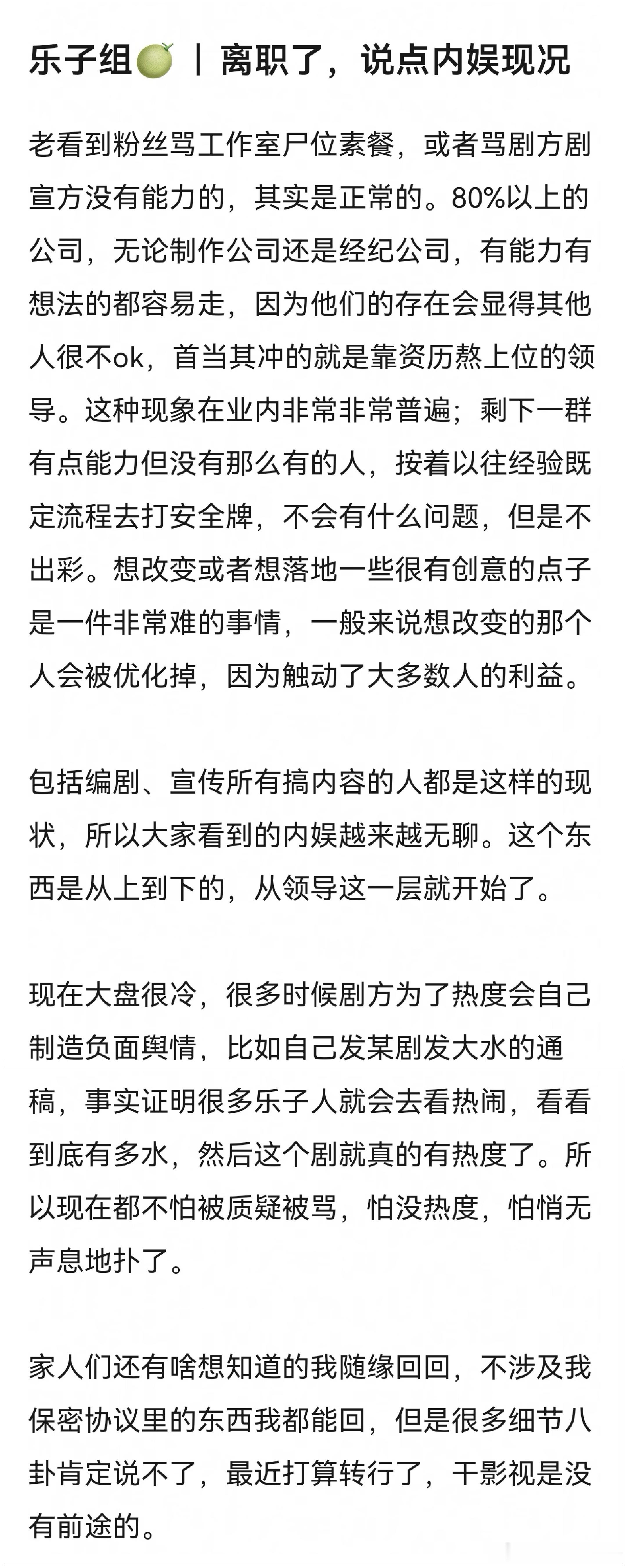 🍉圈内人爆料,说现在的剧为了热度会自己发负面,比如说自己发大水的通稿,不怕被骂,就怕无声无息的扑了