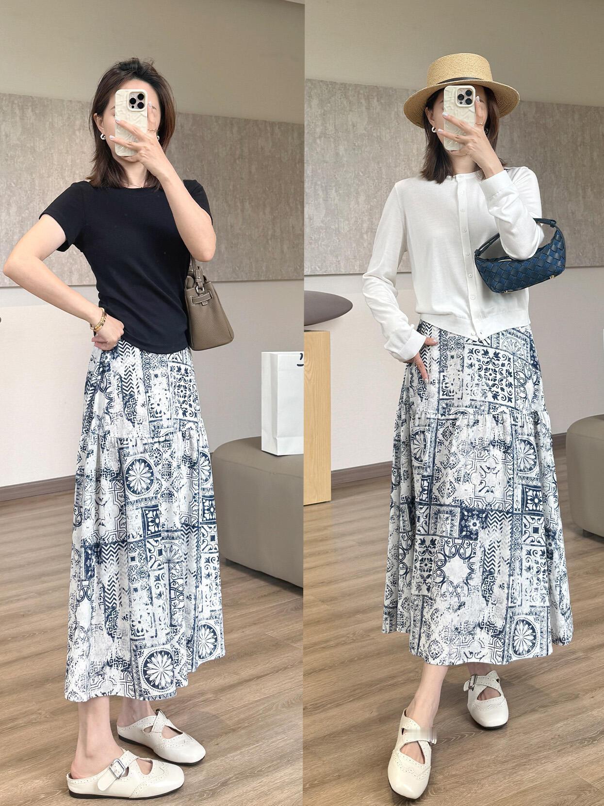 这样穿裙子超好看,温柔松弛感直接拉满!无论是青花瓷印花长裙、简约小黑裙还是缎面半 裙,搭配白T、针织开衫或防晒衬衫,清爽又有层 次。软乎乎的面料和低饱和配色自带温柔滤镜,小白鞋、玛丽珍鞋或凉鞋随意切换,每套都是不费力的日常氛围感,通勤和出游都适配。