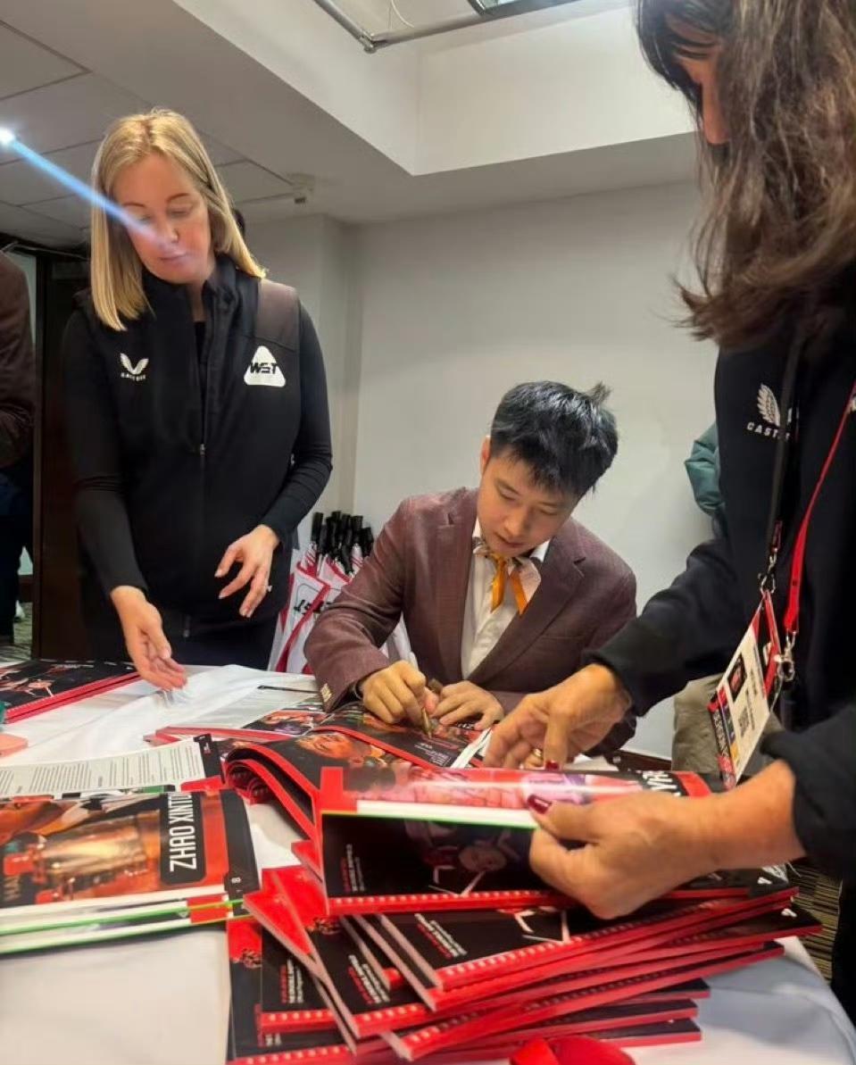 世锦赛开幕,赵心童开始营业,帅气的打扮,大量的签名。 世锦赛绿毯铺好,迎来贵宾。每年的固定节目,前16种子选手合影,中国选手选手全部到场。许久未见练球一个月的丁俊晖和斯佳辉,在现场也精神不错,满面笑容。据英国THE Sun 报道:罗尼·奥沙利文和贾德·特鲁姆普可能因缺席2026年世界斯诺克锦标赛的媒体日而被罚款,不是因为身体原因,无故缺席,将被罚款250英镑。火箭昨天还在爱尔兰和球迷合影,他就是这样我行我素。 里面最忙的当然就是赵公子,要参加晚宴、大量的签名、和球迷合影等等。赵公子打扮的也很帅气,西装的颜色也与众不同,橙黄色的领巾也呼应了他卫冕冠军的身份。 在中国比赛的时候,就是这样的活动太多,球迷过于热情,导致赵心童成绩不算理想。不知道这一次,赵心童能不能扛住大量的活动对自己的影响。 明天下午5点,揭幕战赵心童对阵金刚狼海菲尔德。