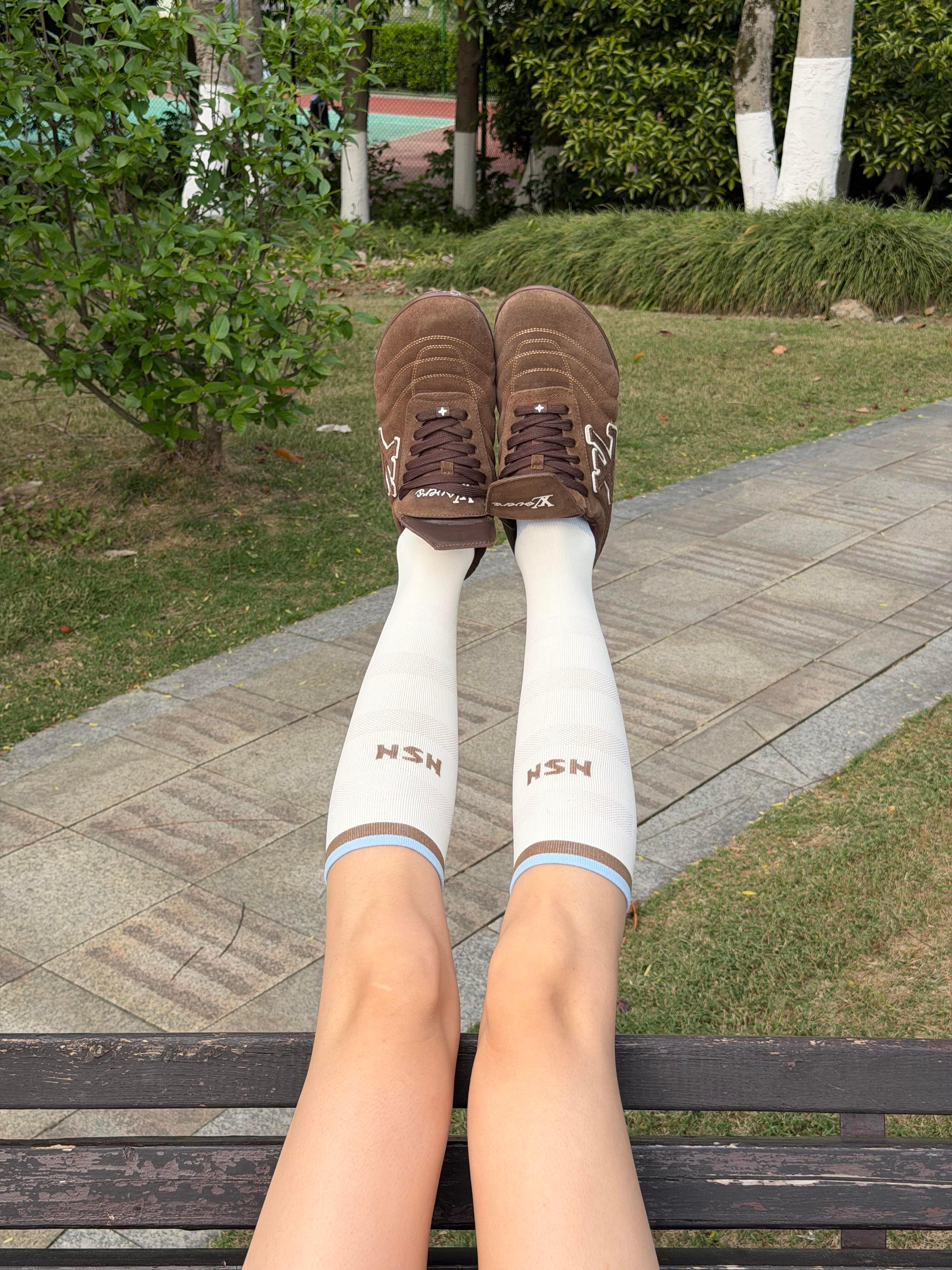 白色运动压力袜!显直显细天花板!白月光来的一双不掉筒不勒腿的白色小腿袜,绝对是夏日灵魂穿搭!!!不仅日常穿搭很nice,同时也是🏃户外徒步,健身爬坡🏋️的好搭档:三段式压力紧紧包裹小腿肉,减少震动,练完不酸不涨,有效防止肌肉腿~