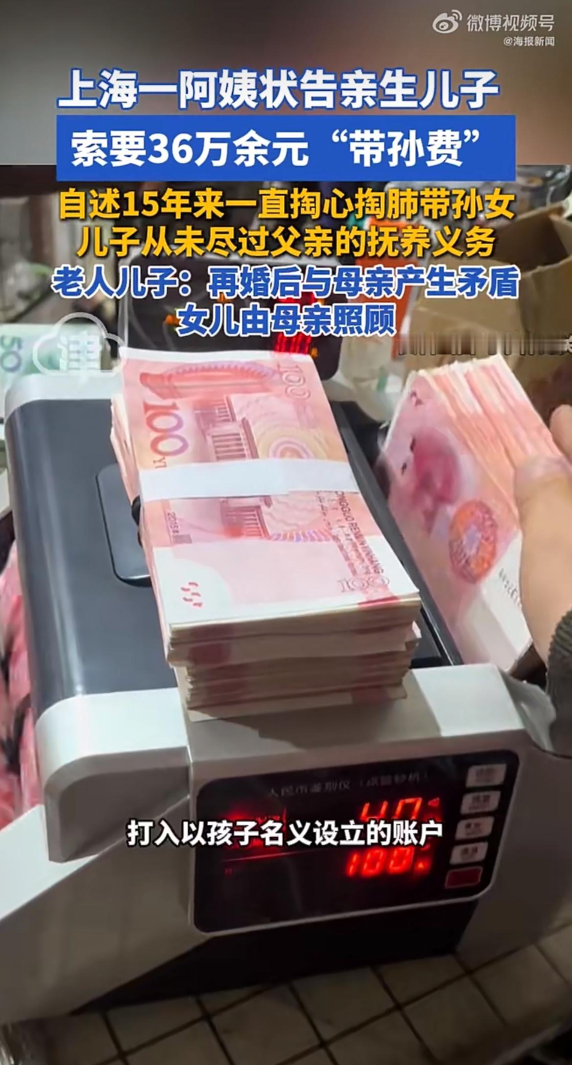 “有了后妈就有后爸!”带了15年亲孙女,奶奶转头把儿子告了要36万“带孙费”?儿子喊冤说不是不想养娃,是怕再婚妻子和女儿磨合不好,才让老人先帮忙带。网友:祖辈带孙辈怎么还伸手要钱呢? 上海年近七旬的徐阿姨早年和丈夫离了婚,一个人把儿子梁先生拉扯大,后来儿子结婚也一直和她同住,一家人日子过得安稳。 2010年孙女小梁出生,徐阿姨平时帮着搭把手带娃,小两口上班赚钱,在很长一段时间里,这都是身边人眼里的标准家庭模式。 2014年,梁先生和前妻离了婚,之后又重新组建了家庭。按照徐阿姨的说法,从那之后儿子就彻底对孙女不管不问了,孩子的生活费、学费、看病钱全是自己掏腰包,一晃就是15年,前前后后花出去的钱加起来有36万多。 原本徐阿姨想着都是一家人,自己花点钱在孙女身上也没什么,可后来因为和儿子的再婚妻子闹了矛盾,母子俩关系越来越僵,徐阿姨越想越觉得委屈,干脆在2025年12月把亲生儿子告上了法庭,索要这15年的“带孙费”36万余元。 但梁先生表示不是自己不想管女儿,是再婚后担心妻子和女儿相处不好,加上女儿上学的学校就在母亲家附近,来回转学也影响孩子读书,权衡之下才决定让女儿暂时跟着奶奶生活,自己并非完全没有尽到抚养义务。他觉得母亲之所以闹到法院,本质上还是不满意自己再婚,心里有怨气才拿“带孙费”说事。 法院受理后先组织了多次调解。法官表示,从法律上来说,抚养孩子本来就是父母的法定义务,祖辈没有义务承担孙辈的抚养费用,如果老人确实在没有约定的情况下为孩子支付了各项开销,子女是应当予以补偿的。 最终在法院的协调下,母子俩达成了一致:梁先生拿出20万元存款,打入专门以女儿名义开设的账户里,作为对母亲这么多年抚养支出的一次性补偿,这个调解结果目前已经生效。 这官司看着是母子俩算钱,其实背后是很多家庭都没理清的问题:老人帮忙带娃是情分不是本分,不少年轻父母习惯了把长辈的付出当成理所当然,既没给钱也没给够关心,时间久了自然伤了老人的心。 你身边有没有类似祖辈带娃的情况?你觉得老人帮忙带娃,子女应该给报酬吗?欢迎在评论区聊聊你的看法。点赞转发给家里人都看看,厘清情分和本分,一家子才能相处得更舒服。关注我,每天给你讲最贴近生活的热点案例和实用常识。大众9X预售发布 可爱多一点,干爽多一点 华境S全球首秀标配华为乾崑 来源:海报新闻