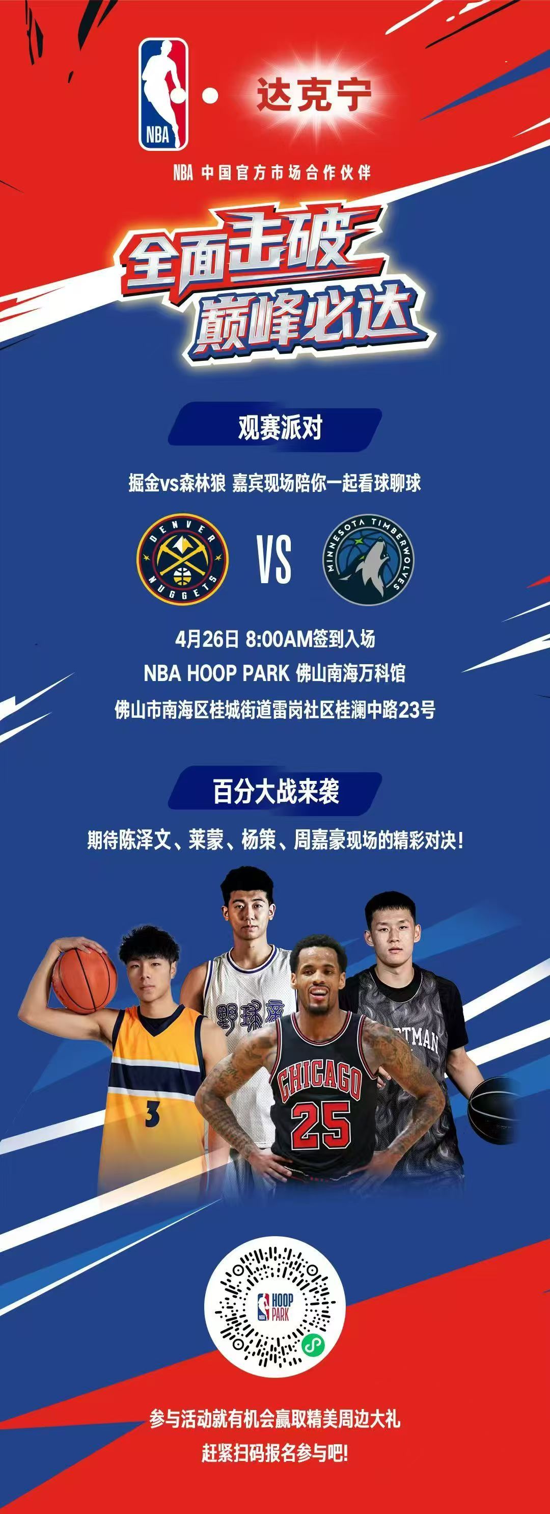 矿蜜季后赛观赛派对第一波!广州-佛山!长按扫码报名!4月26日周日早上G4不见不散!森林狼vs掘金