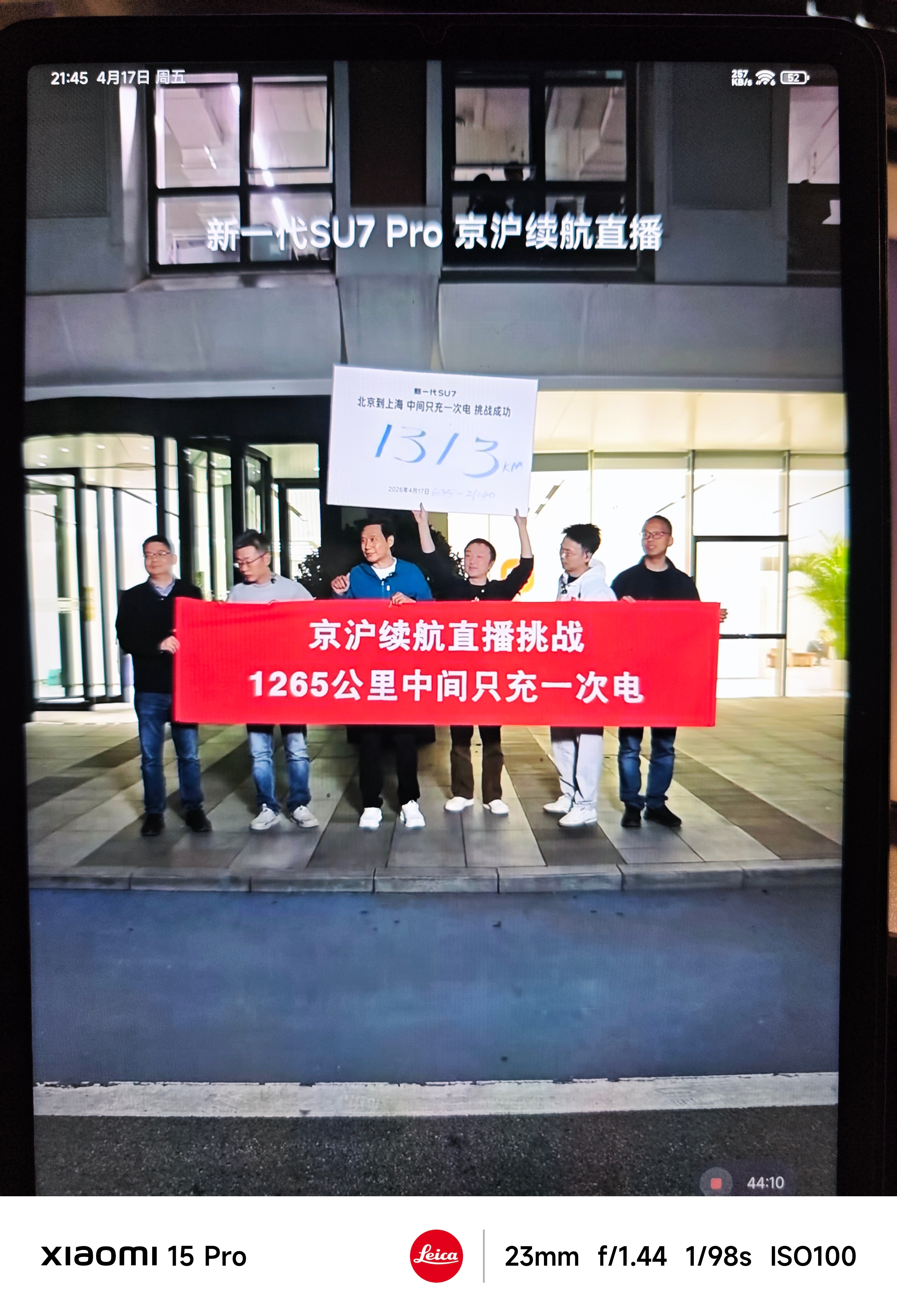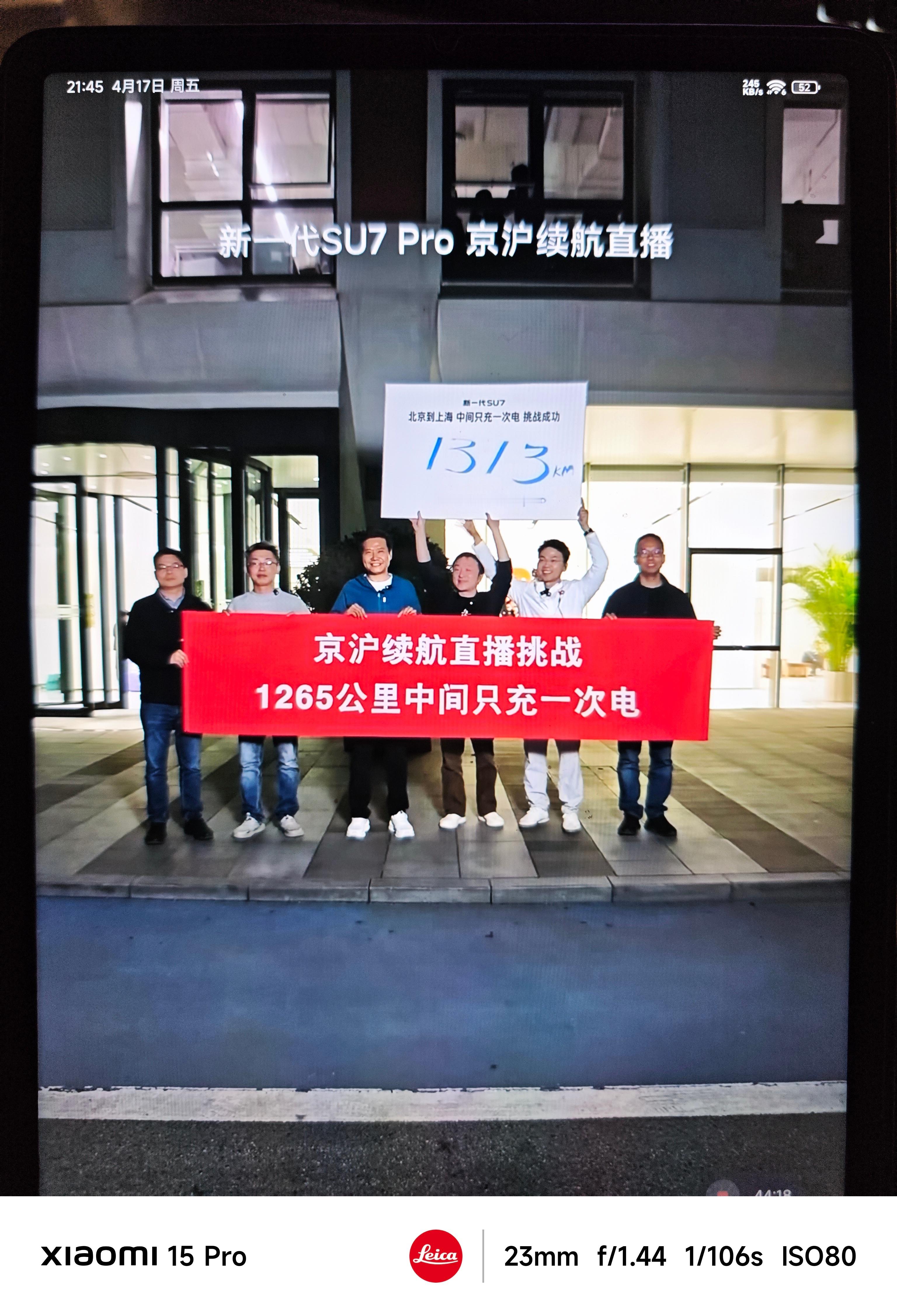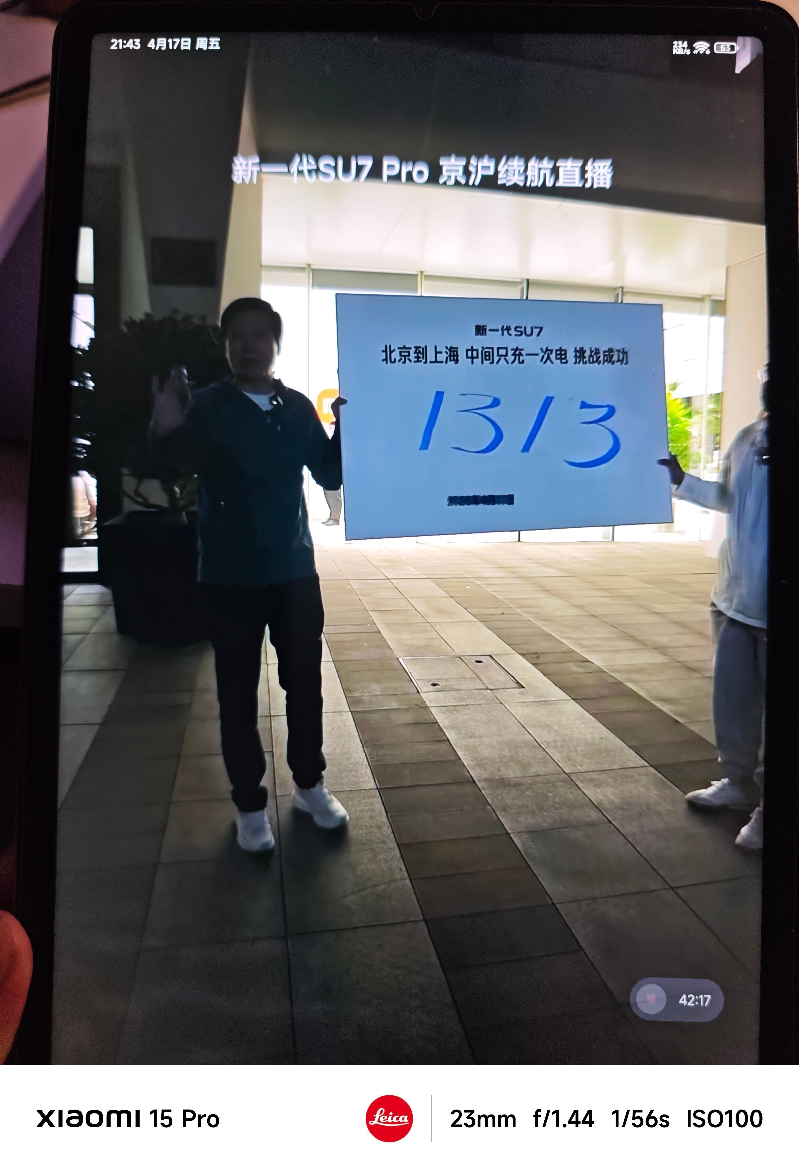 1313 公里! 小米老车主前排发来贺电,小米新SU7满电从北京到上海,中间只充一次电,雷总全程直播真实测,刚刚顺利达成!雷军达成京沪高速只充一次电