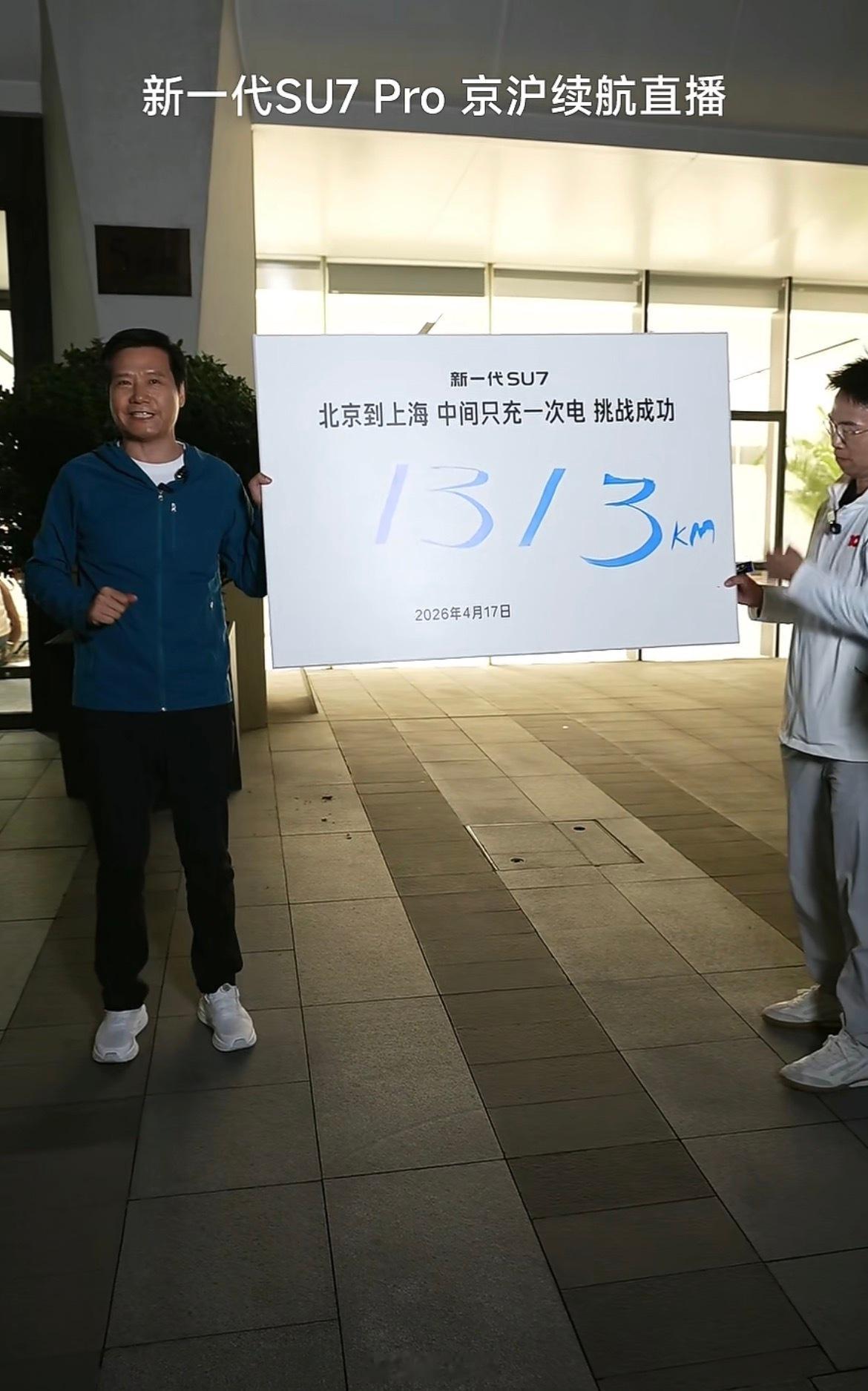 雷军达成京沪高速只充一次电雷军达成京沪高速只充一次电,最终跑到了1313km,余电还有19公里,牛逼