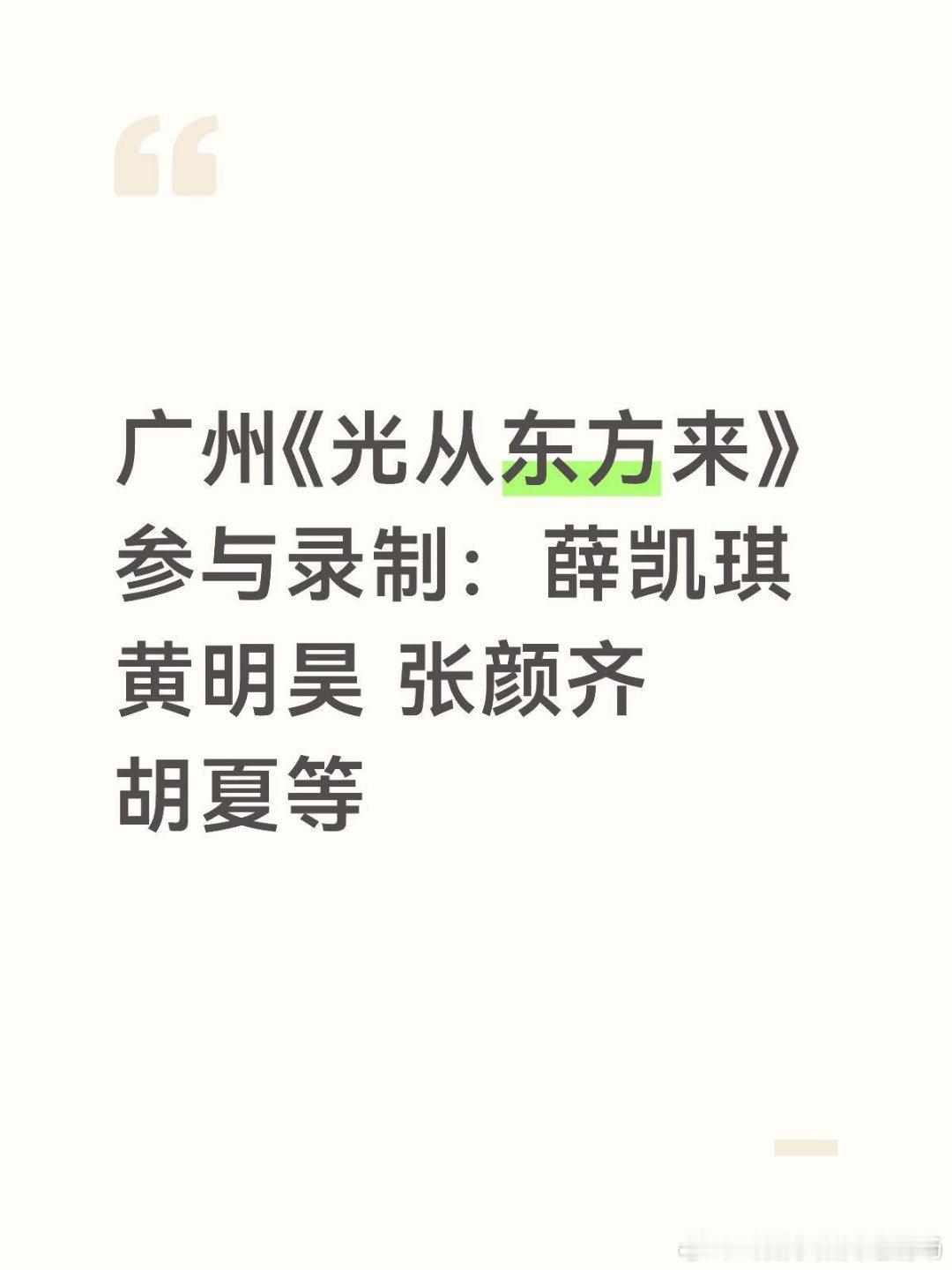 广州《光从东方来》参与录制:薛凯琪黄明昊张颜齐胡夏等