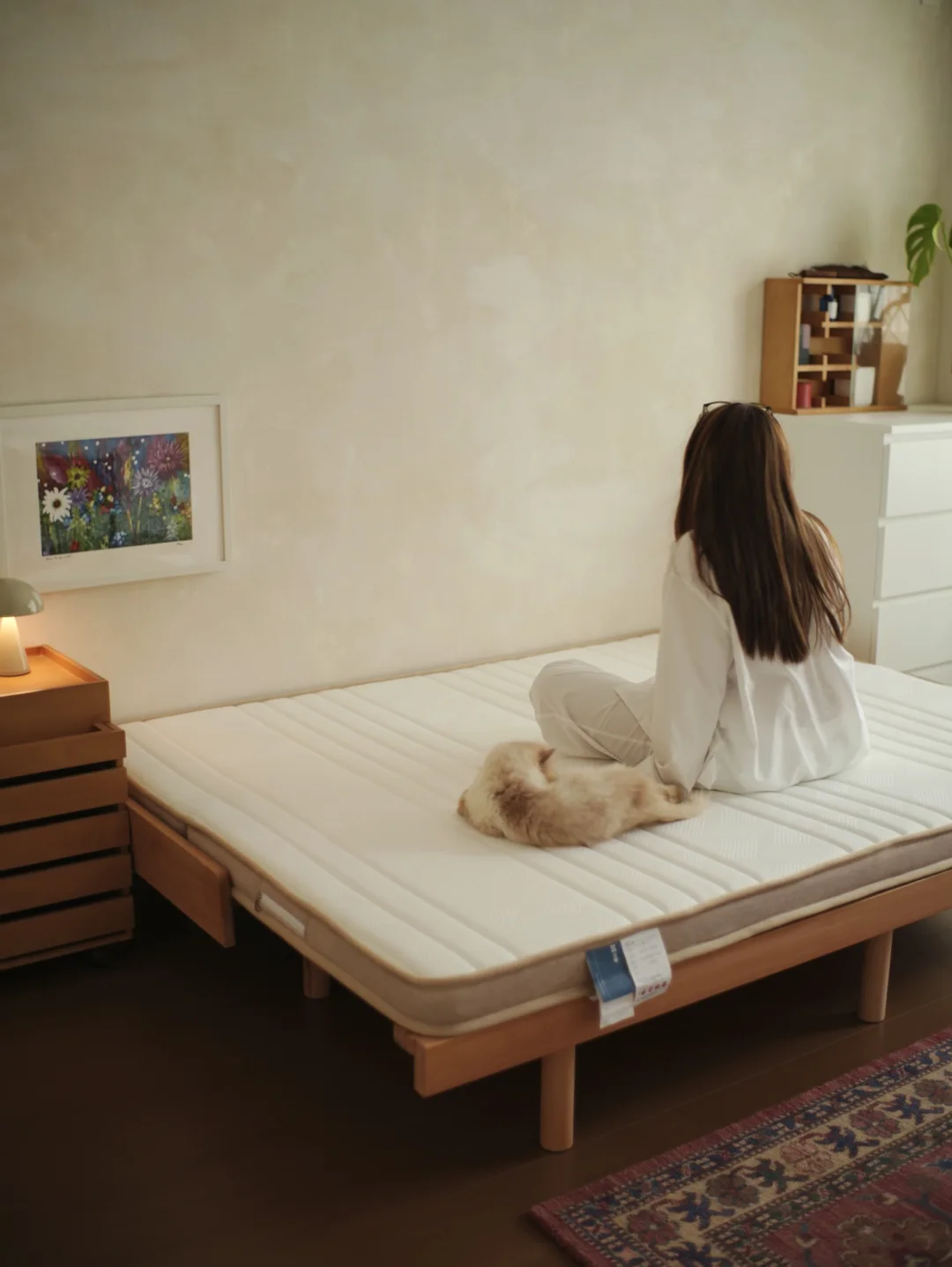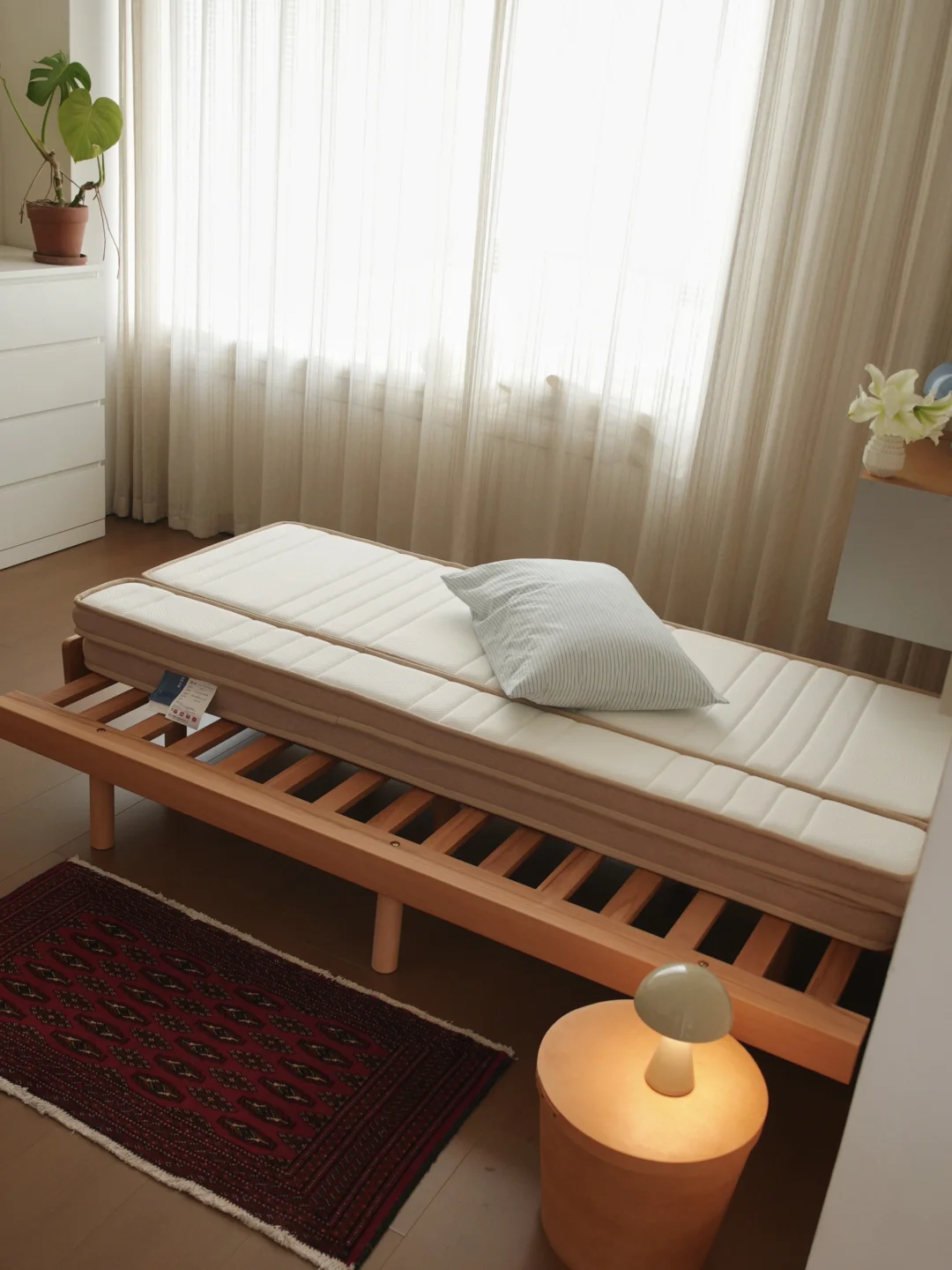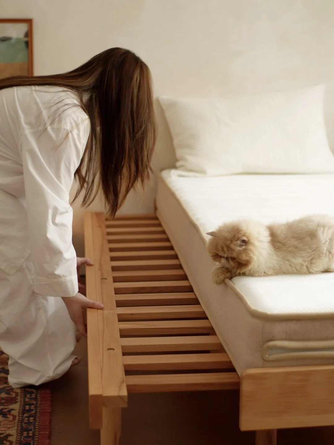 一直想把卧室的一米八大床给换了 卧室空间一大块都被床占有 可以走动的位置都变得拥挤了 终于,今天把它换成了推拉床 收起来85cm 展开150cm适合卧室很小的房间 拉开单人床秒变双人床 放上专用的床垫 很透气软硬适中 泰国乳胶➕s级黄麻 睡起来很舒服 小猫咪看起来也很满意了👍🏻 推拉床沙发床折叠床垫定制床垫黄麻床垫护脊床垫