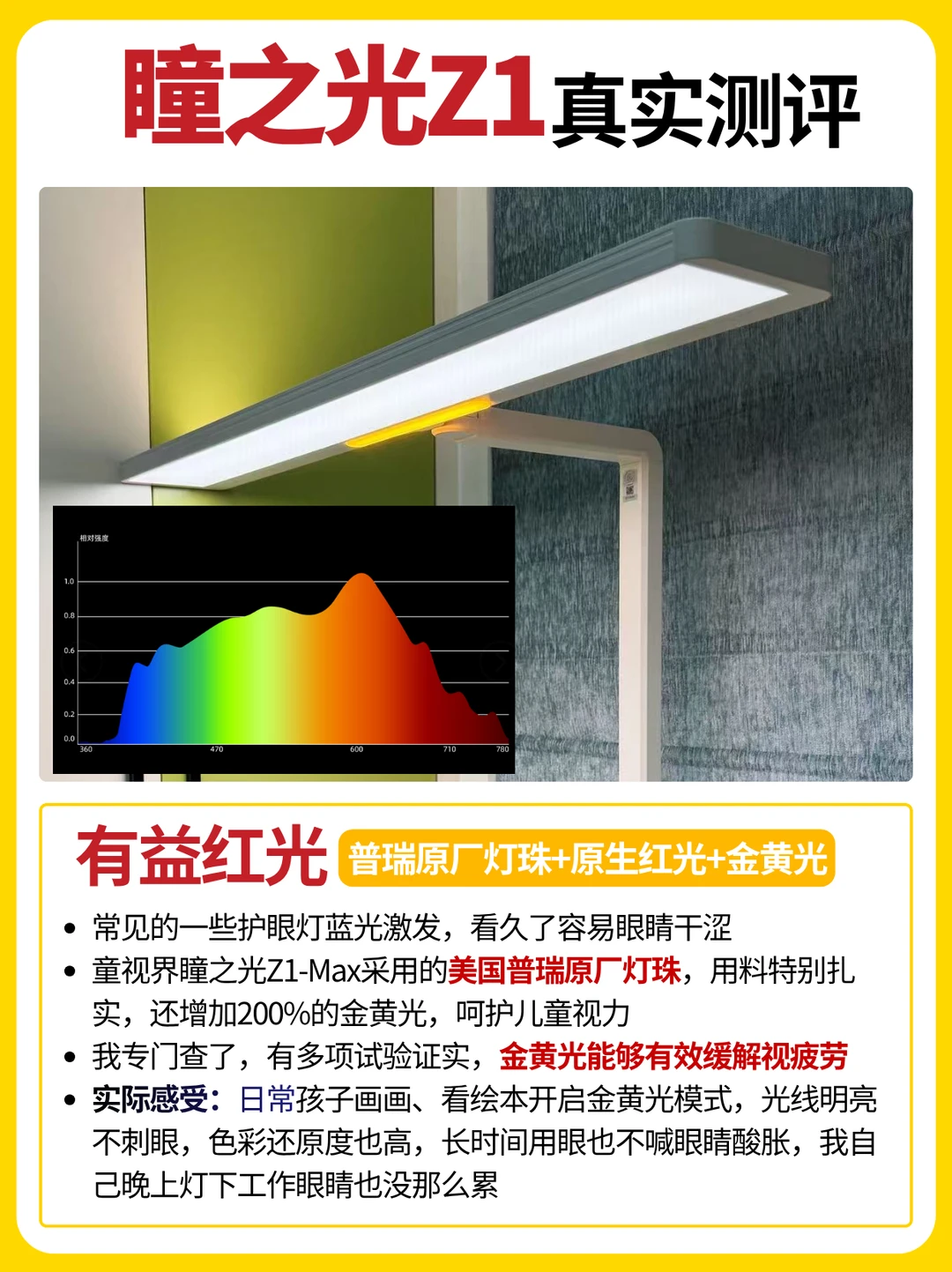 所以在选护眼灯这件事上我特别较真,对比了一圈参数和口碑后,最终入手了童视界瞳之光Z1-Max,用了这么久是真心觉得选对了。
