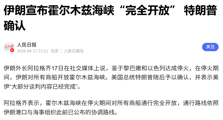 伊朗遭不住海上封锁,还是妥协了,一个小国还是挑不动老美这个巨兽。老哈梅内伊白死,铀浓缩暂时停止,进行稀释只能用于发电,换来政权可以暂时保留。相当于美以退了一小步,伊朗也得到了没被消灭的“惨胜”。从阿克萨洪水以来的以伊冲突,基本会消停一段时间,此轮博弈结束。仍然会有下一轮出牌,就看怎么酝酿了。但一段时间内应该不会占头版头条了。