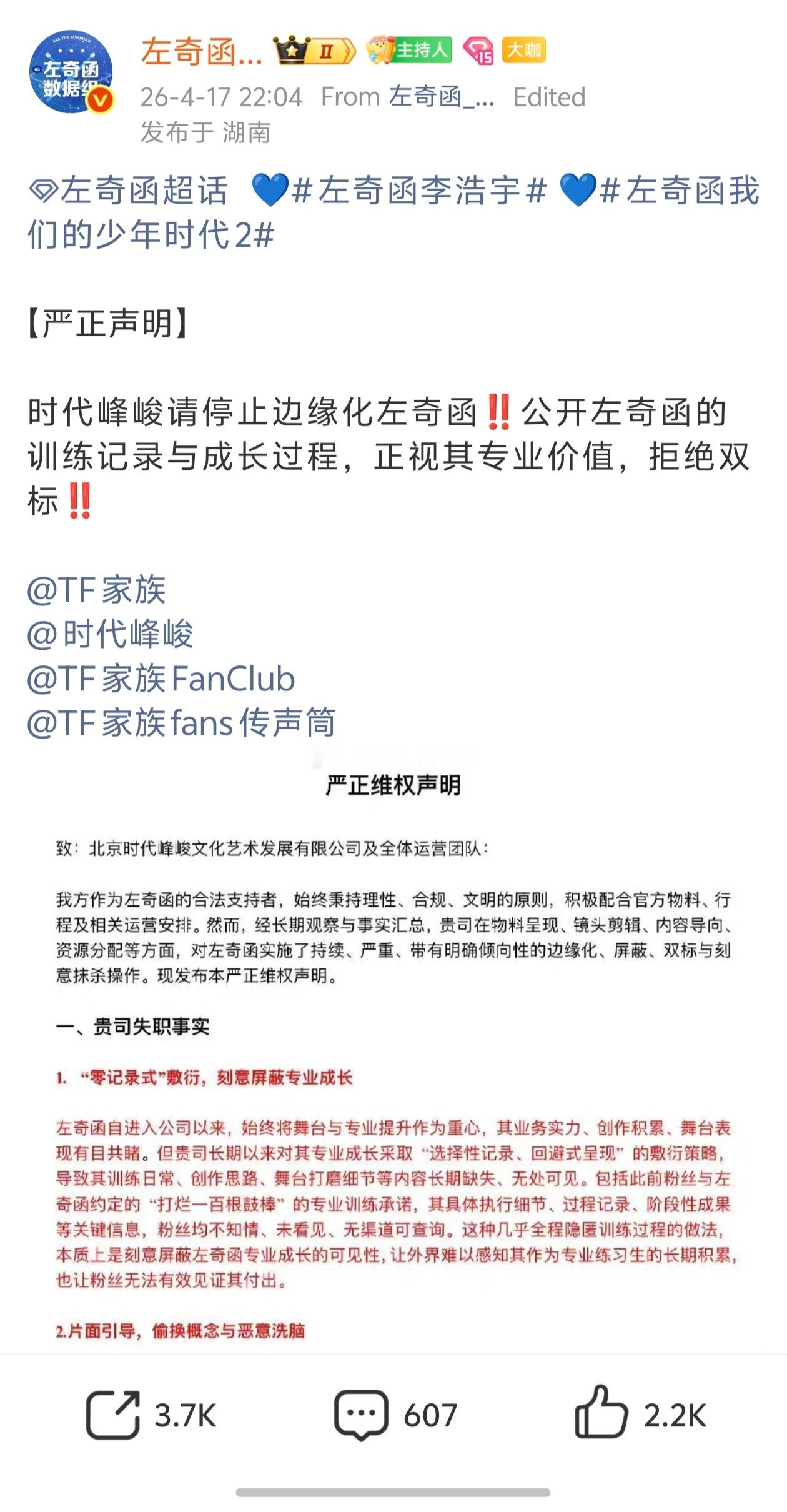 左奇函粉丝维权,请停止边缘化左奇函👊👊