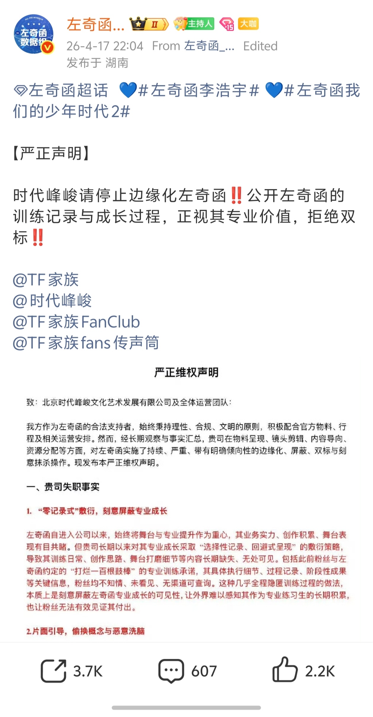 左奇函粉丝维权,请停止边缘化左奇函👊👊