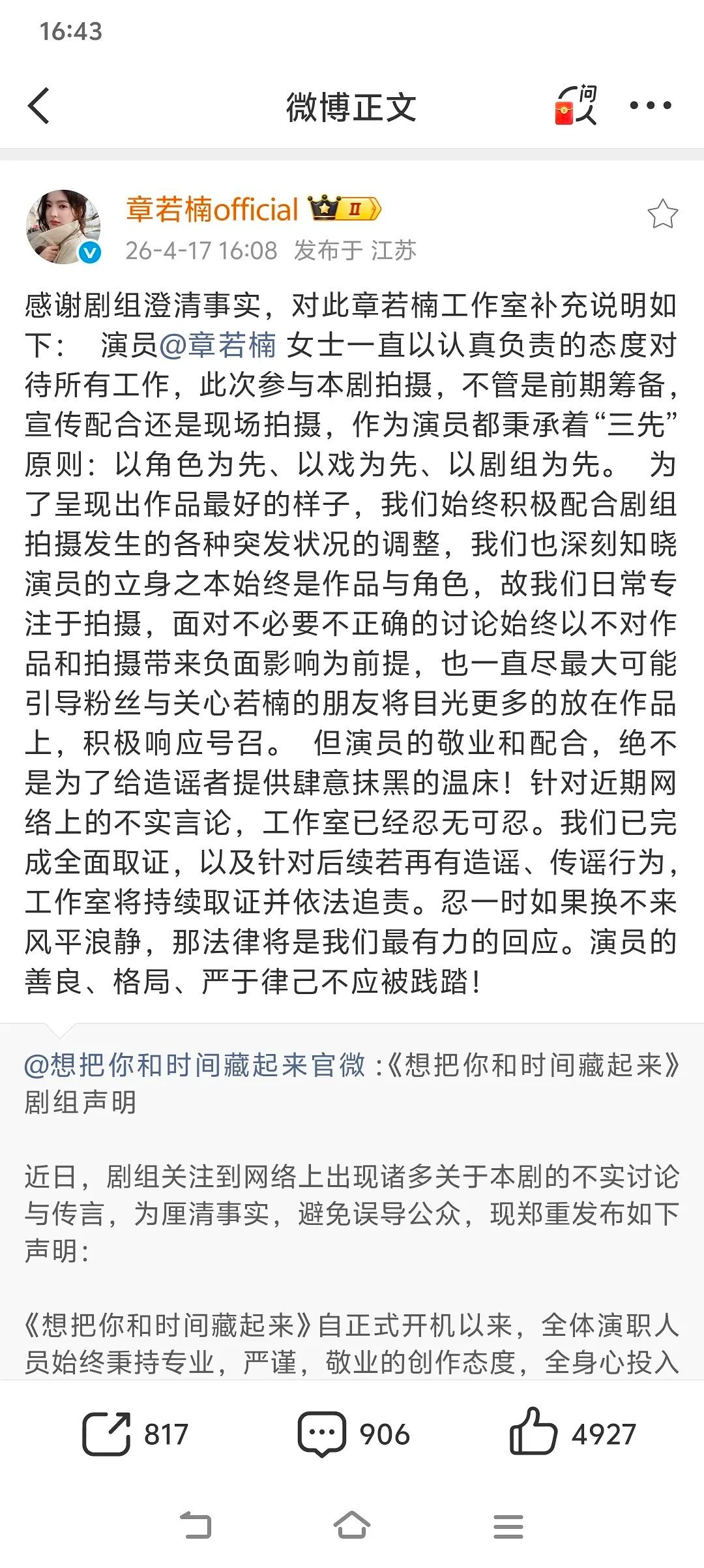 章若楠后援会喊话剧组,剧组回应了,这件事情算和平解决吗?会不会有影响啊?