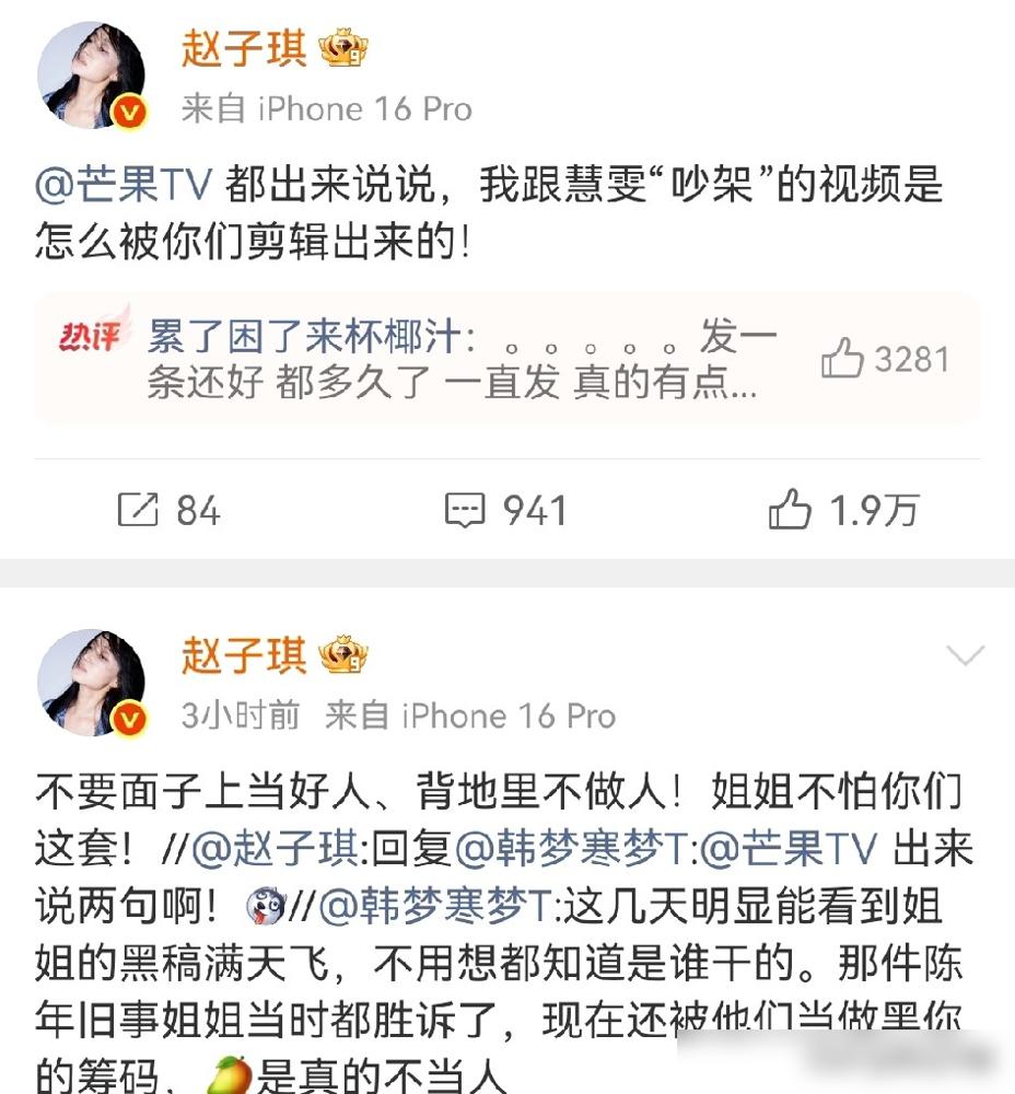 别逼我爆所有料!赵子琪凌晨6条微博硬刚芒果,一句话把《浪姐》的遮羞布扯了下来。 你看到的,是她和张慧雯吵架。你没看到的,是6分钟正常讨论被砍成2分钟冲突,和好的画面一刀切掉,再配上放大表情和挑事字幕。 你以为淘汰就完了?人家凌晨5点走的,连自己的包都不让进屋拿,助理递出来,像被扫地出门。还得补拍一个“独自收拾行李”的镜头,你品品这操作。 三个月的苦练,换不来三分钟的公正镜头;一颗想赢的心,抵不过一把冰冷的剪刀。