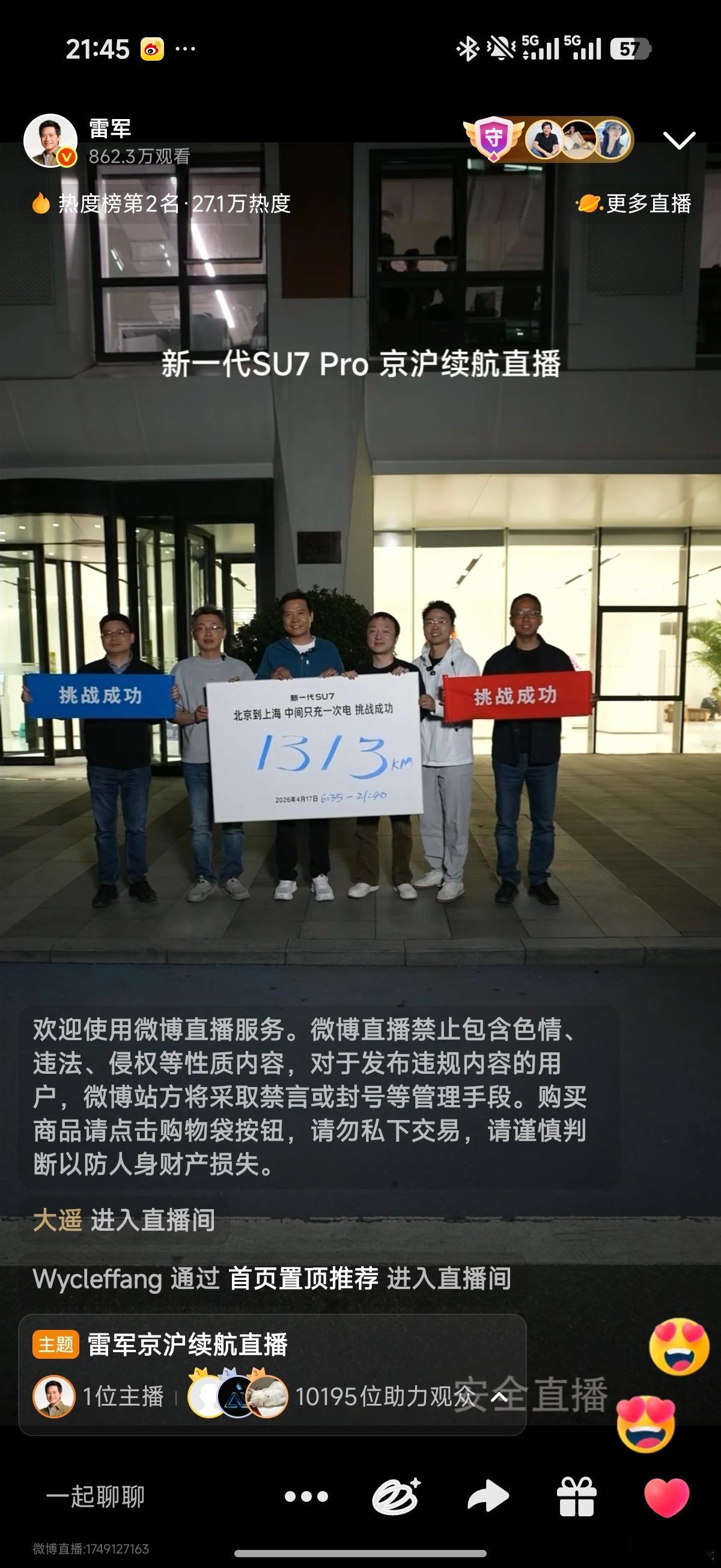 第二段到临沂剩3%电时,已跑630公里,电耗才14.7度/百公里,顶着限速跑。这个成绩真的非常牛了,这么播一天,谁还能说啥。。。雷总说最大的心理负担不是体力,是“不能说错话,说错就被黑子抓住拼命黑”。害,闭环了