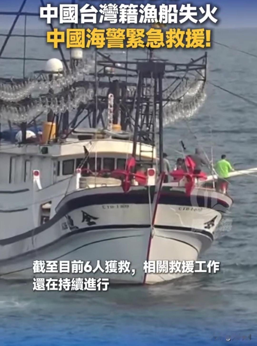 4月16日,中国海警在钓鱼岛海域救助了一艘着火的中国台湾籍渔船,6人获救。 当时船上已经着火冒起浓烟,情况非常危急,幸好有中国海警船紧急驰援,在水火危难之间挽救了6个人的生命。据称船上共有7人,搜救还在持续中。 渔船在茫茫大海上失火,船员没处躲也没处跑,内心的恐惧可想而知。同胞的驰援救助,对他们来说是唯一的希望了。这真是水火无情同胞有爱,关键时刻还得靠血浓于水的同胞亲情!