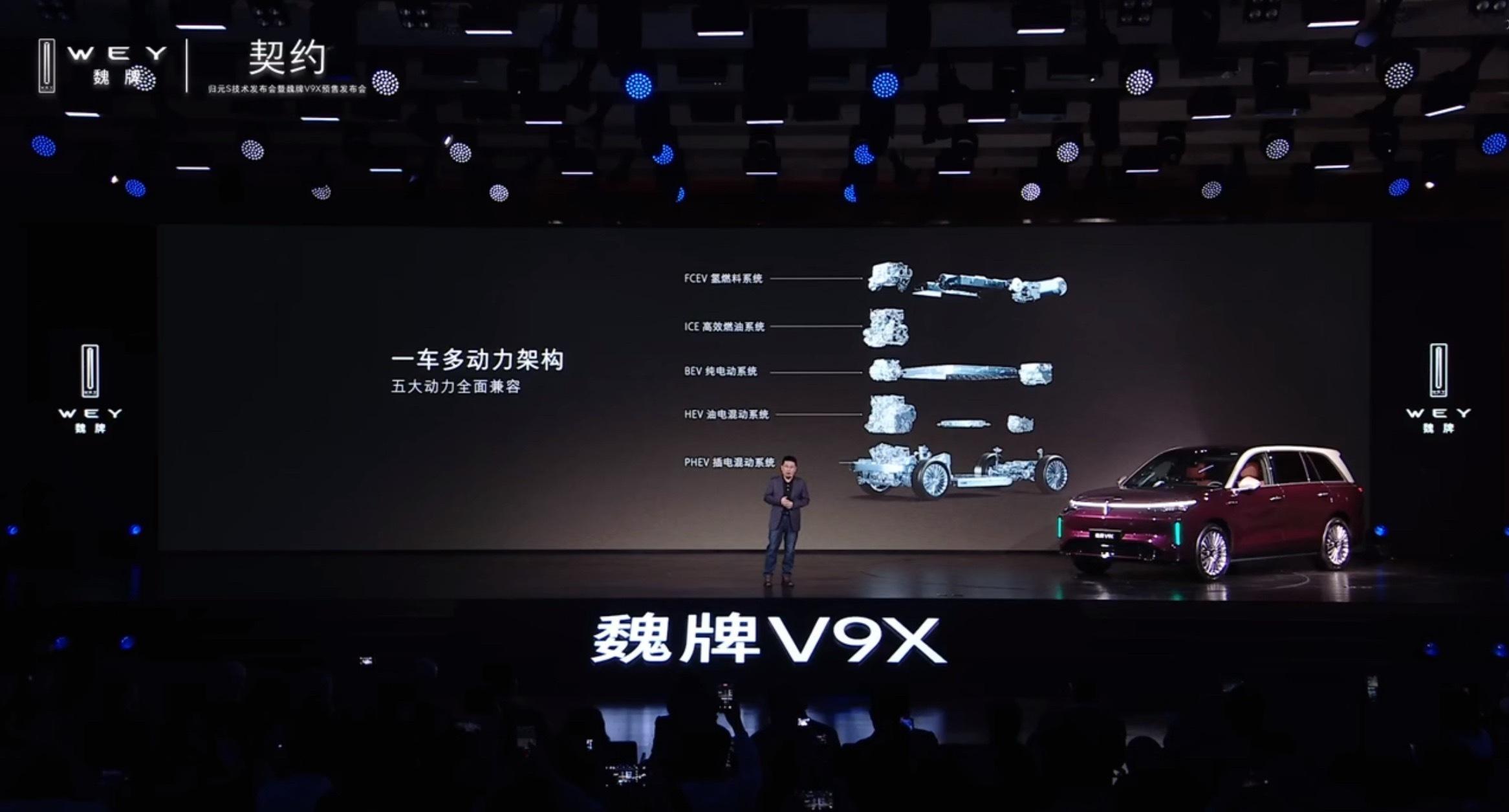 这次魏牌V9X是基于归元理念的最高技术平台打造,并且面向全球。像一车多动力,为的就是满足不同的用车需求。