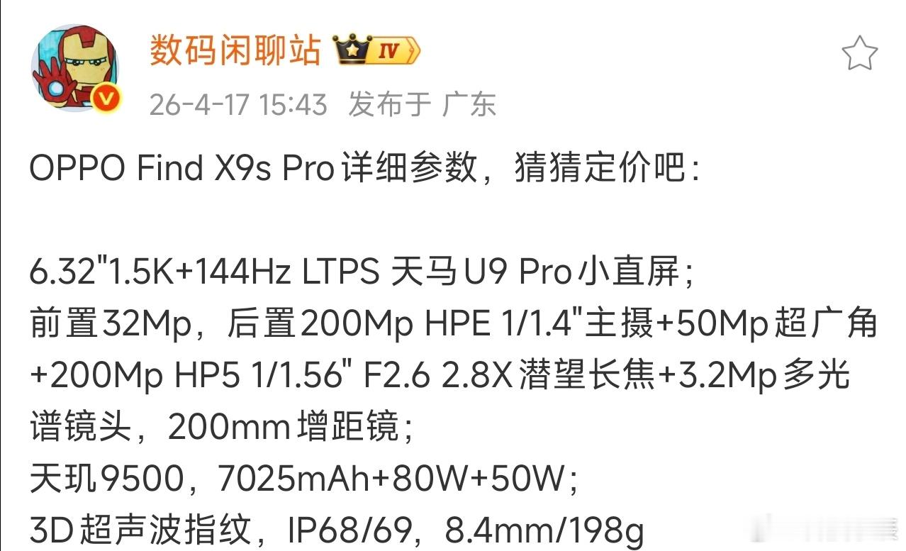 至于价格,我觉得悬念还挺大的。从供应链涨价的角度看,参考前代Find X8s Pro 5299元的起售价,新机定价可能会在5499元左右。但最近爆料也有说瞄准中高端,可能从5299元起跳,甚至有传言为了卡位会定在4699元或4999元。不过结合这个配置和存储涨价的大环境,感觉5499元左右的可能性比较大。