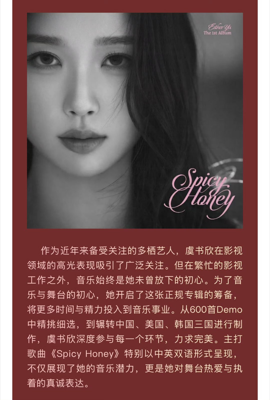 额。。。还有人不知道虞书欣的专辑是找中、美、韩三国团队一起制作的吗😅70%的制作工作由海外团队完成 ,以中英双语主打歌开创华语音乐新模式。😎