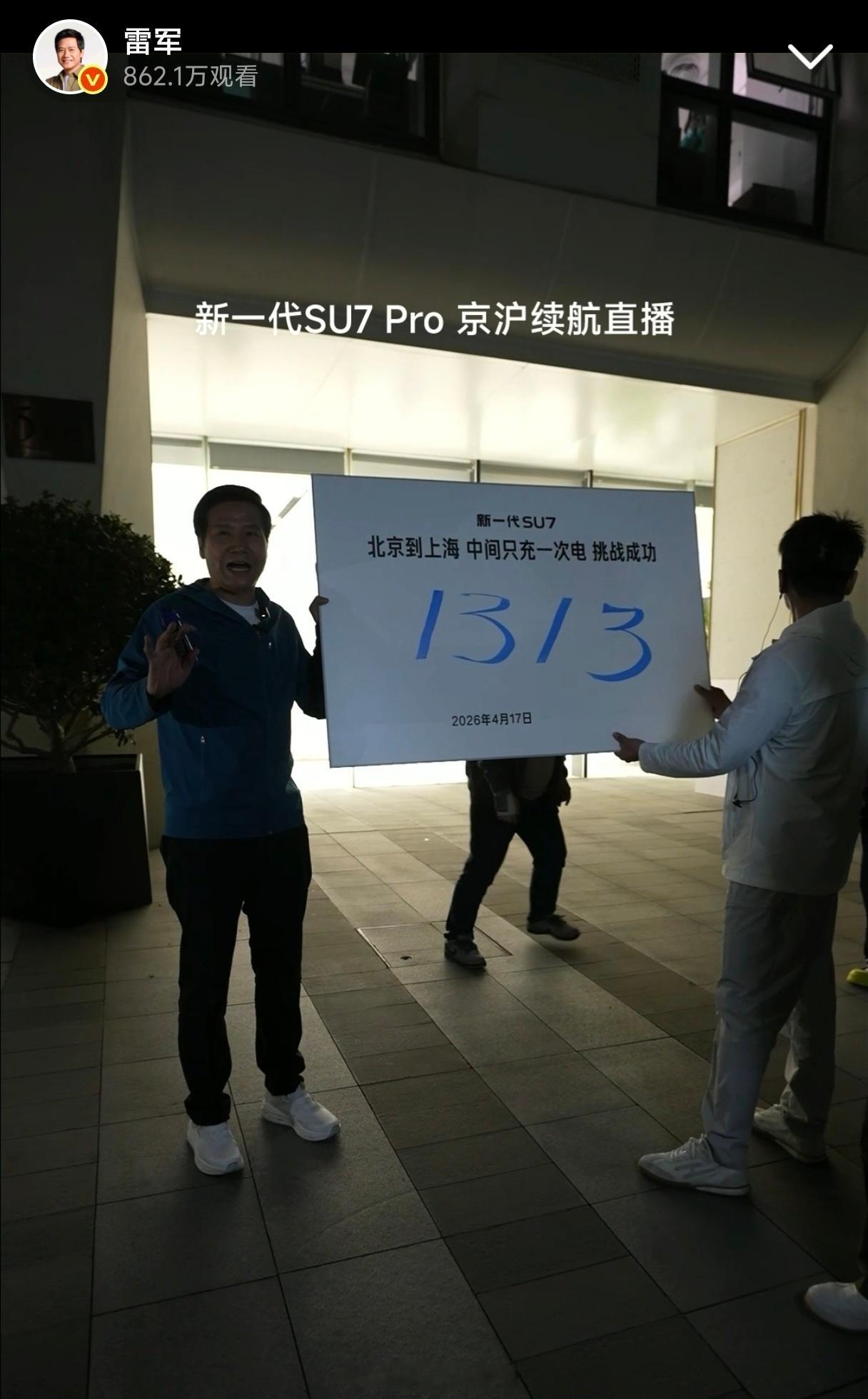15小时不间断直播,雷总是真的拼,小米SU7续航也是真的扎实。