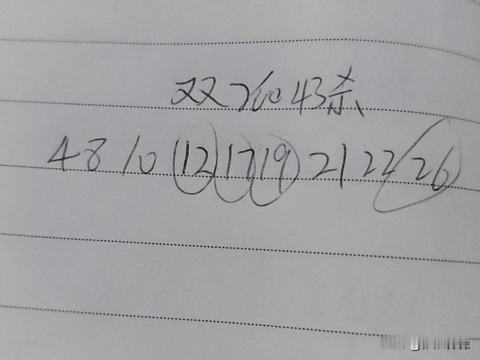 双色球26043期杀码 04、08、10、12、17、19、21、22、26 上期开奖号码02、07、12、19、24、31,重的是三个号码02、19、24,再重三期的可能不大,但12、17、19之中很可能有一码,17属隔位码,07、31很可能重一个。 杀号中九码,至少会有1一2个杀错,上面说了12、17、19,还有一个26这4码至少有一个,剩余5码中04、08、10、21、22,最多也会出一个,21或22。