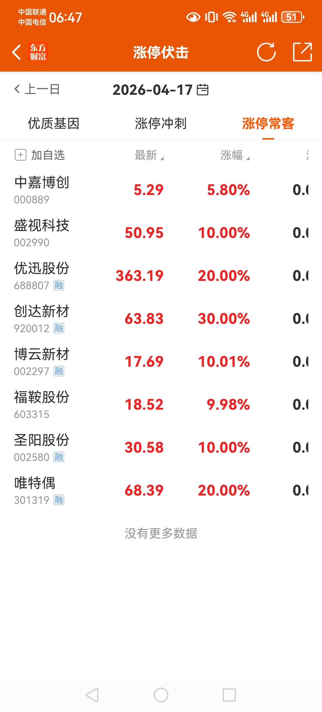 个人下周关注的涨停常客 不作为投资推荐!仅供个人参考 1. AI算力链:中嘉博创(算力租赁)、盛视科技(算力需求)、优迅股份(算力硬件) 2. 硬科技/高端制造:创达新材(半导体材料)、博云新材(航空航天材料)、福鞍股份(能源装备) 点赞👍+关注,股市不迷路。