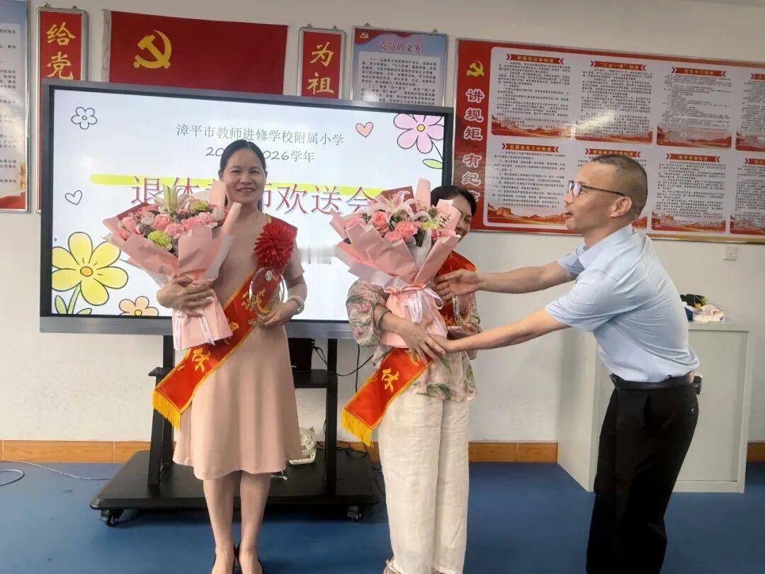 福建漳平附小退休教师林桂萍、刘文英欢送会 4月16日举行,陈毅人校长致欢送词,两位退休老师先后分享感言,同仁们讲述两位老师潜心育人、关爱学生、默默奉献的感人事迹!