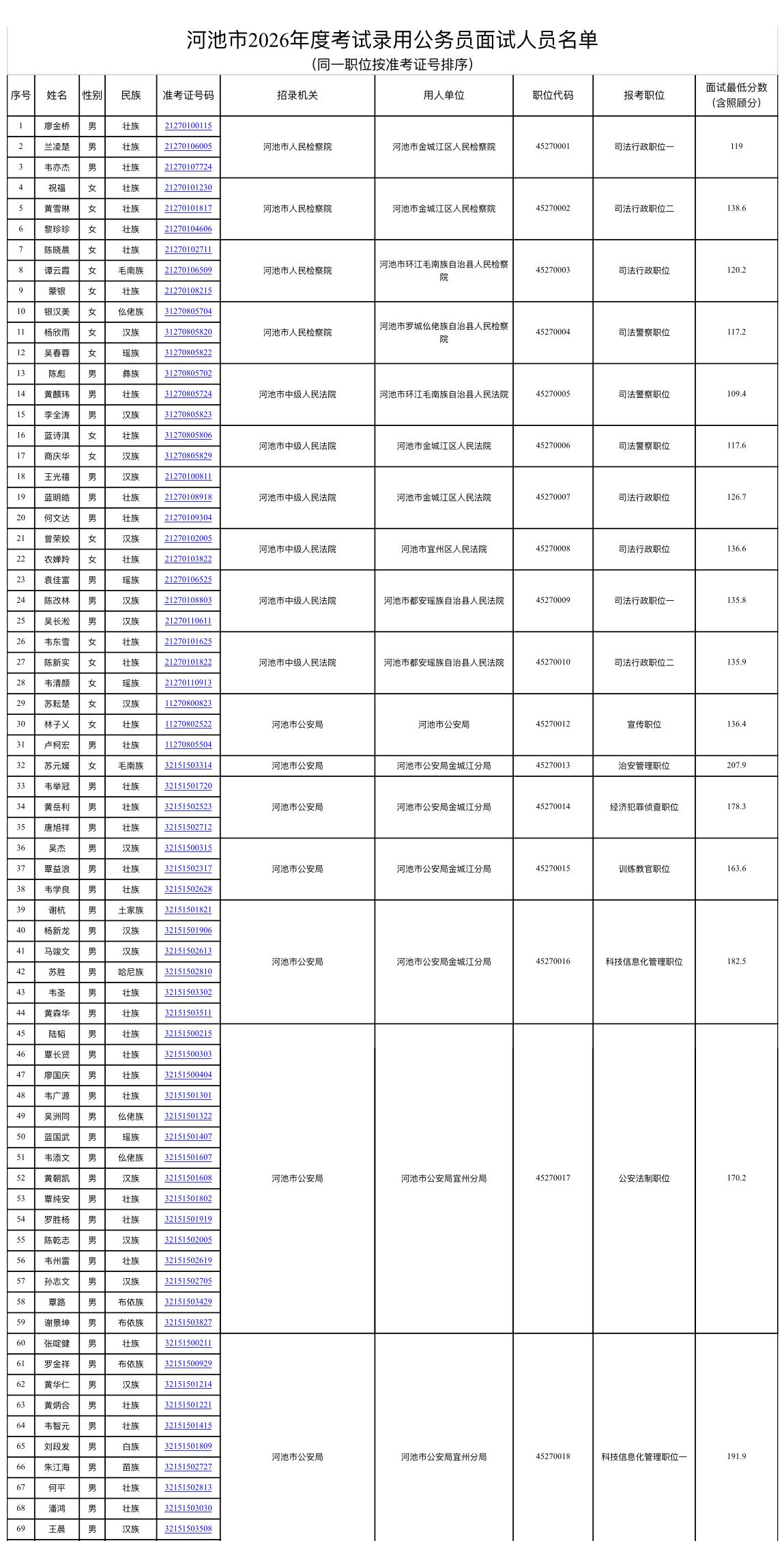 名单公布!广西河池公务员面试通知 📌发布单位:河池市公务员局 🔹面试人员:1357名考生入围(名单见附件) 🔹资格复审:2026年4月22日-24日(8:00-12:00,15:00-18:00) 🔹面试时间:2026年4月25日-26日(7:20前报到) 🔹面试地点:河池市职业教育中心学校 💡重要提醒: 1. 需携带身份证、学历证明等材料原件 2. 面试不收取费用,交通食宿自理 3. 未按时报到视为放弃资格 公务员考试 广西省考 河池公务员 面试通知 考公 考编 公考