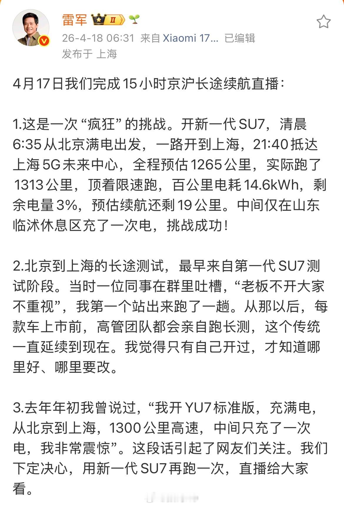 说实话,看到雷总这么拼,你是不服不行,活该人家这么成功,昨天北京到上海差不多十五个小时,今天又起这么早,真厉害