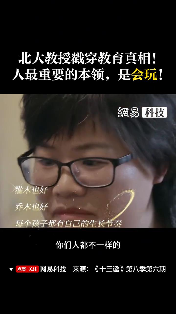 北大教授戳穿教育真相!人最重要的本领是会玩! 网易科技。 人很重要的一个本领其实就是玩,玩会玩才幻化出一个领域就叫艺术。但是你看看现在我们玩的本领有吗?给你三天没有手机,你试试看,你觉得你跟这个世界怎么相处?你会玩泥巴吗?你会自己随便瞎走吗? 如果你想到人终究是要死的,你会发现有很多的事情的看法和做法都会不一样。人一生真的不能只是谋生,你还得干点别的。如果你不直接为谋生而做的事情越多,你的一生其实就是越幸福的。如果你一生做的所有事情都只是为了谋生,你这一生就是个苦役。 再回过头来,你演化成一个学校的管理、安排和教育,原理就是你不能让他每时每刻都学习。我也是一个独立存在的个体,然后我也能开出一朵花来,我也能够把我的一生用我的方式来过好就可以了。 人们总是说要去别的地方看一看,其实这并不是人生的一个必然的价值。我就觉得是,你在全世界各地转一圈挺好的,康德一辈子没走出那个镇不也挺好的吗?为什么一定要用某一种单一的价值来调动所有人,他强调这个什么合作,大家一起探究。 其实好多时候我就喜欢一个人呆着,我为什么要跟那么多人合伙?你其实可以给一些这个空间让我们自己去挣扎,跟别人合伙的时候我会有人际的压力。所以你可以说我情商不高,可是我情商为什么要高?说的好,教育的知识体系里边对人进行过度的细化和分析,人经不起分析的。 凡是对于这种人格什么的,我觉得这种分析我都不是特别信,也不是特别想用。因为我总觉得人来到这个世界上,各色人等都有活下去的理由。 灌木也好,乔木也好,每个孩子都有自己的生长节奏。别管什么多血质、粘液质,哪个特点、哪个星座,老天爷的安排你们人都不一样的。没有哪个人格特质就一定高于好于另外一个。但是今天的很多体系当中,培养的是开放、外向、口若悬河,培养所谓演讲能力。 我觉得我从小天生就是害羞、含蓄,也配在这个世界上活着,这个世界上也应该有我的一个位置,又不跟你抢位置,但是也不可能占据所有位置。