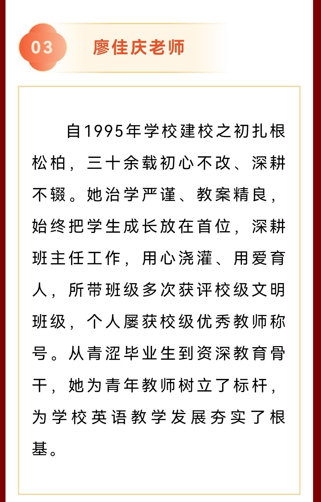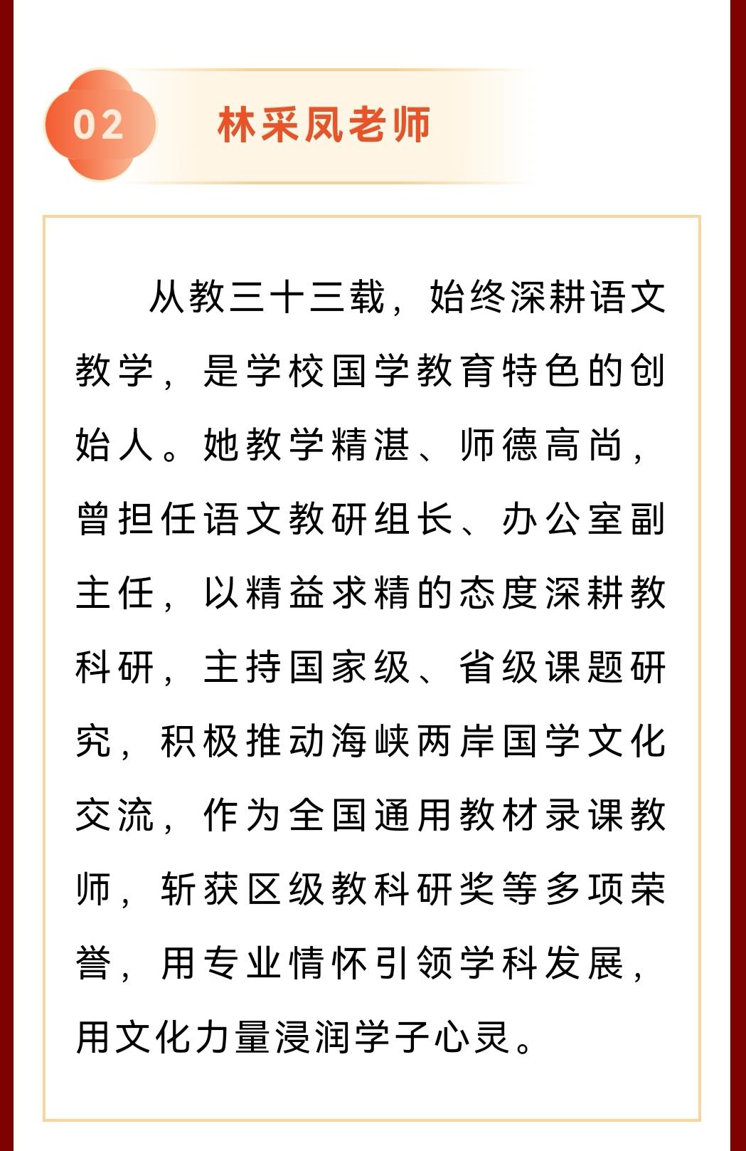 厦门市松柏中学为吴日强、林采凤、廖佳庆三位老师举行荣休仪式,工会主席高飞主持并致辞,党委书记刘宗华寄语、感谢。
