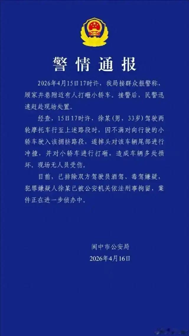 要是数一数在紧急情况下情绪管理最到位的人,四川阆中被砸小车的车主应该能算一个。 4月15日,这位车主用理性、沉着、冷静告诉人们一个道理,与冲动的人狭路相逢,不与其发生正面冲突,才是防止矛盾升级、事态扩大,甚至造成不可收拾的局面最有效的方法。 坐在车里就是不出来,任由怒气冲天的徐某某对车辆疯狂打砸。面对这样的场景,有人说车主太怂,其实车主一点也不怂,反而是另一种方式的刚。 你看看结果就知道了。4月16日,阆中警方已经发布通报,赤膊上阵对他人车辆进行打砸的男子已经被刑事拘留。 而且,如果打砸车辆给当事人造成的损失超过5000元,涉事人员是要承担刑事责任的 ,这个不是闹着玩的事,甚至连家人都可能会受到影响。 而这位车主,因为情绪管理到位,没有与对方发生正面冲突,自己什么损失也没有。车辆虽然损坏了,但是警方已经介入,徐某某一定会照价赔偿,一分钱都不会少。 而如果在当时车主下车,与对方发生正面硬刚,谁赢谁输不好说姑且不论,最关键的是结果难以预料。法治社会,两人发生冲突,打赢了进牢房,打输了进病房,这话不是没有道理的。 阆中的这位车主用行动给我们上了一课:不要与不讲理的人讲理,也不要与冲动的人硬刚 ,首先要保护好自身安全,其他的事交给法律。