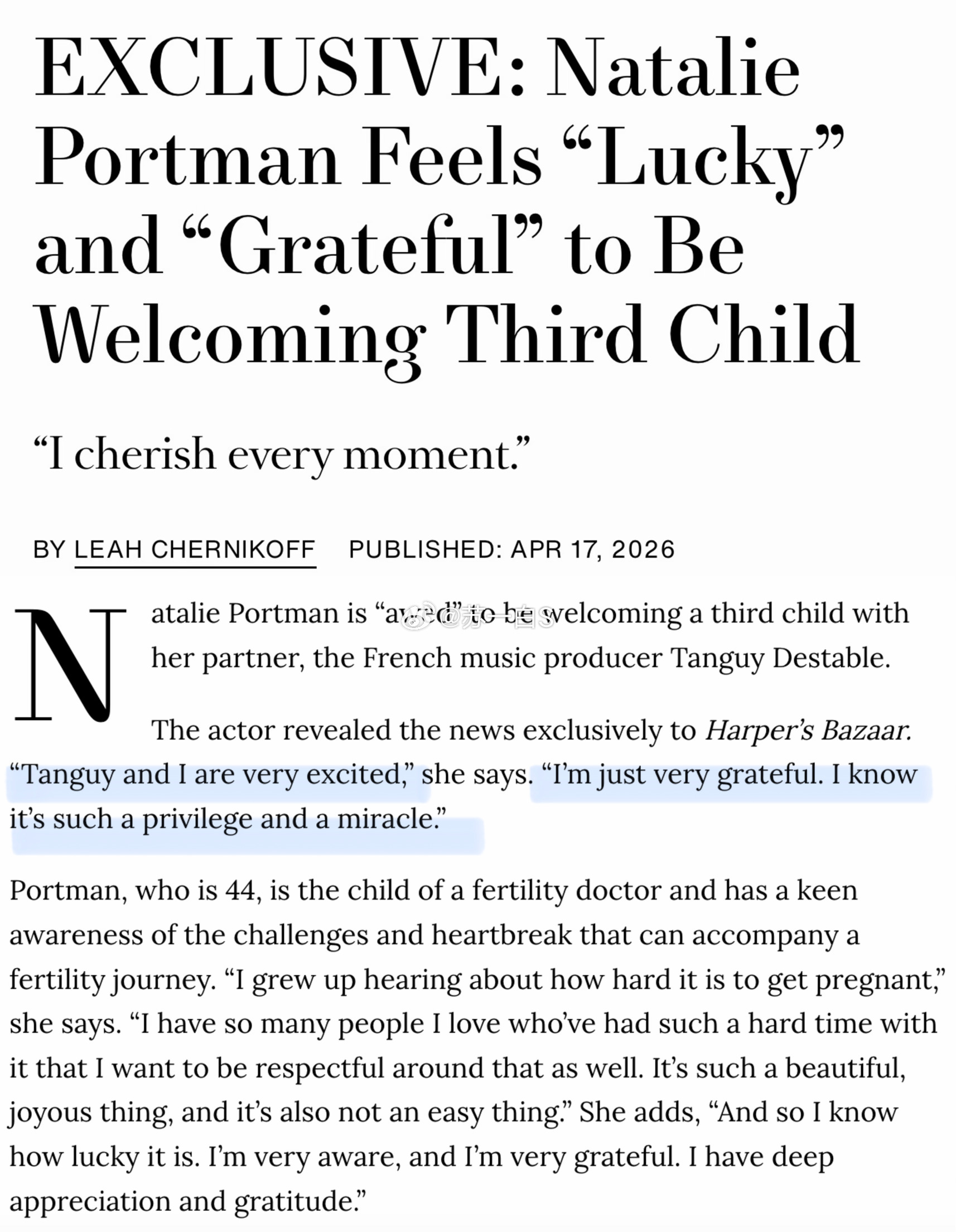 Natalie Portman(娜塔莉·波特曼)宣布她怀孕了‼️在44岁的年纪即将迎来跟现男友、法国音乐制作人Tanguy Destable的孩子👇