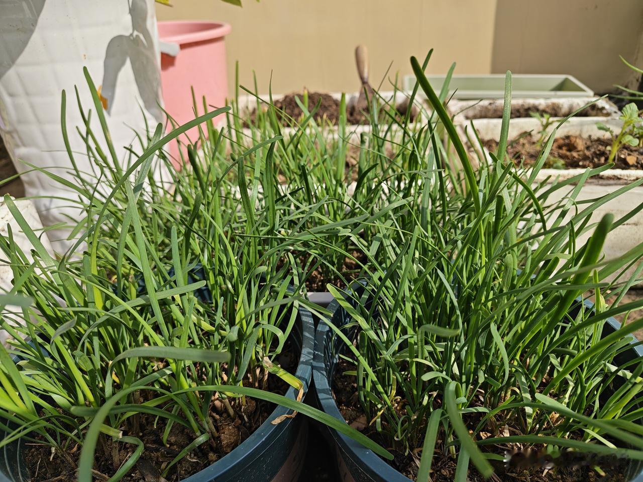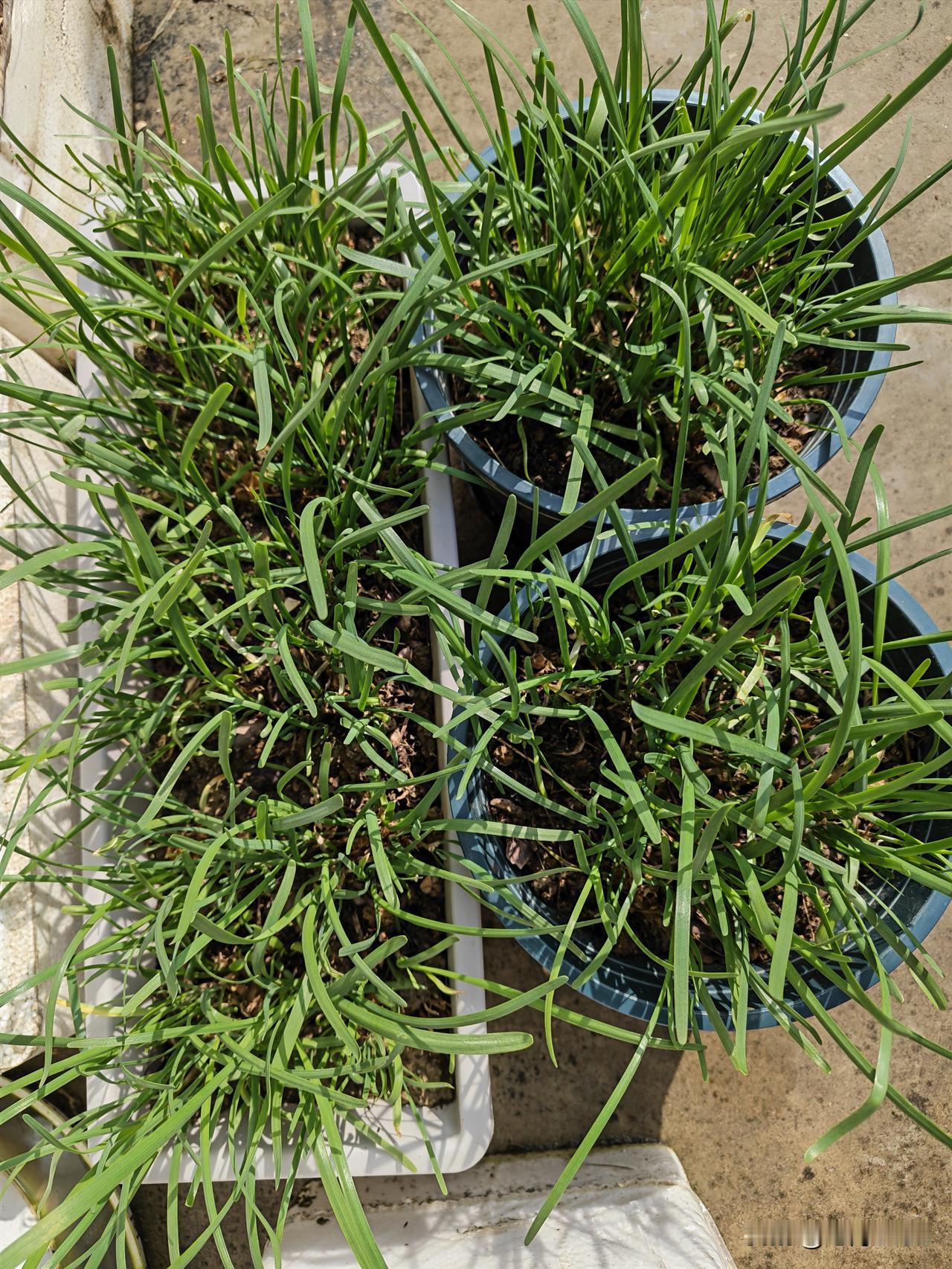 拼多多上买的韭菜根,三月份买的,刚到家时,焉不拉几的,差点就想扔掉了。 后来耐心把根修修剪剪,用几个花盆栽起来,放到楼顶上,隔三差五的上去浇点水,没想到渐渐活过来了,绿油油的,长势喜人,马上就可以割一茬了。