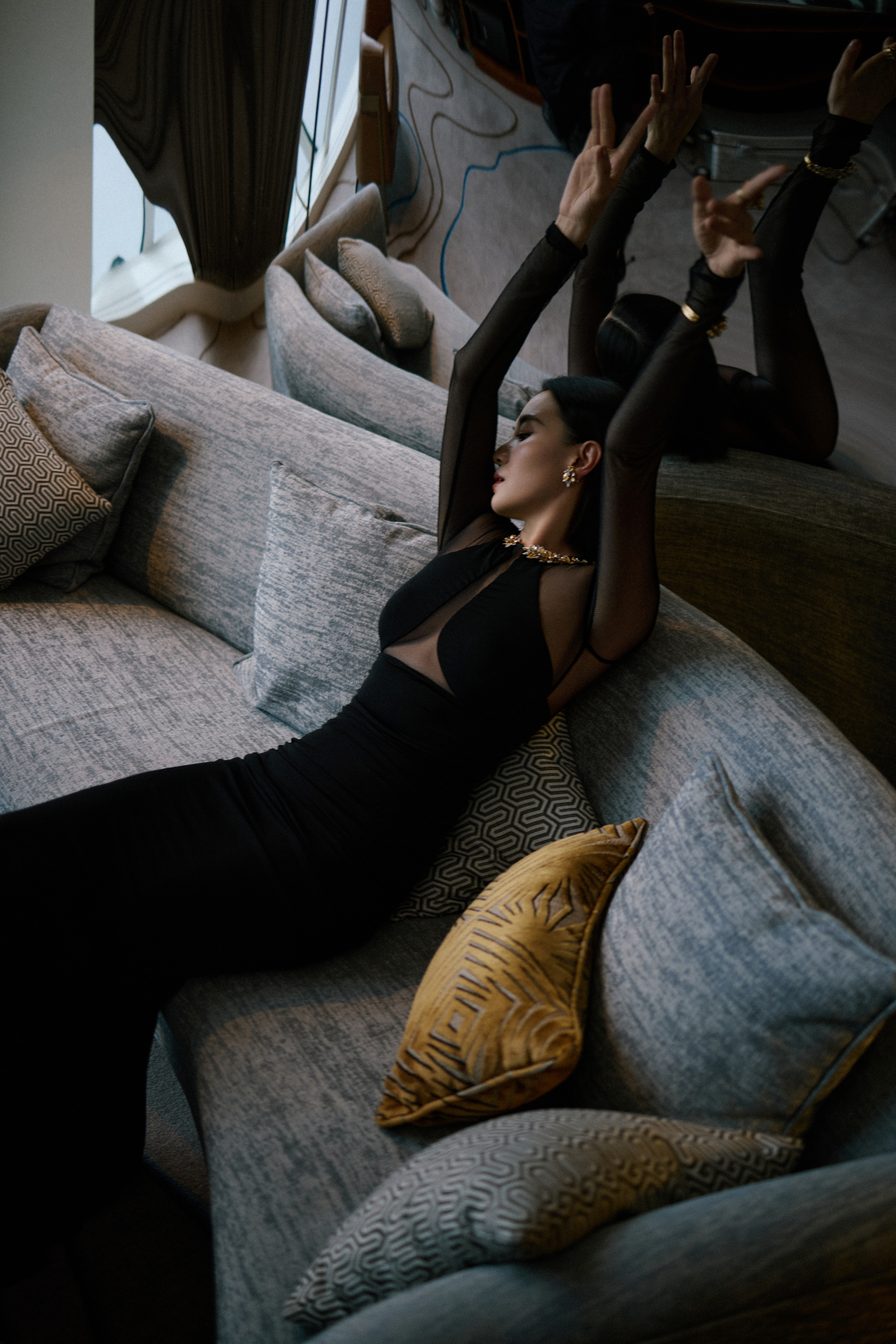 北京国际电影节这波造型太绝!🔥一袭墨绿丝绒长裙亮相,将奢华与性感完美融合。修