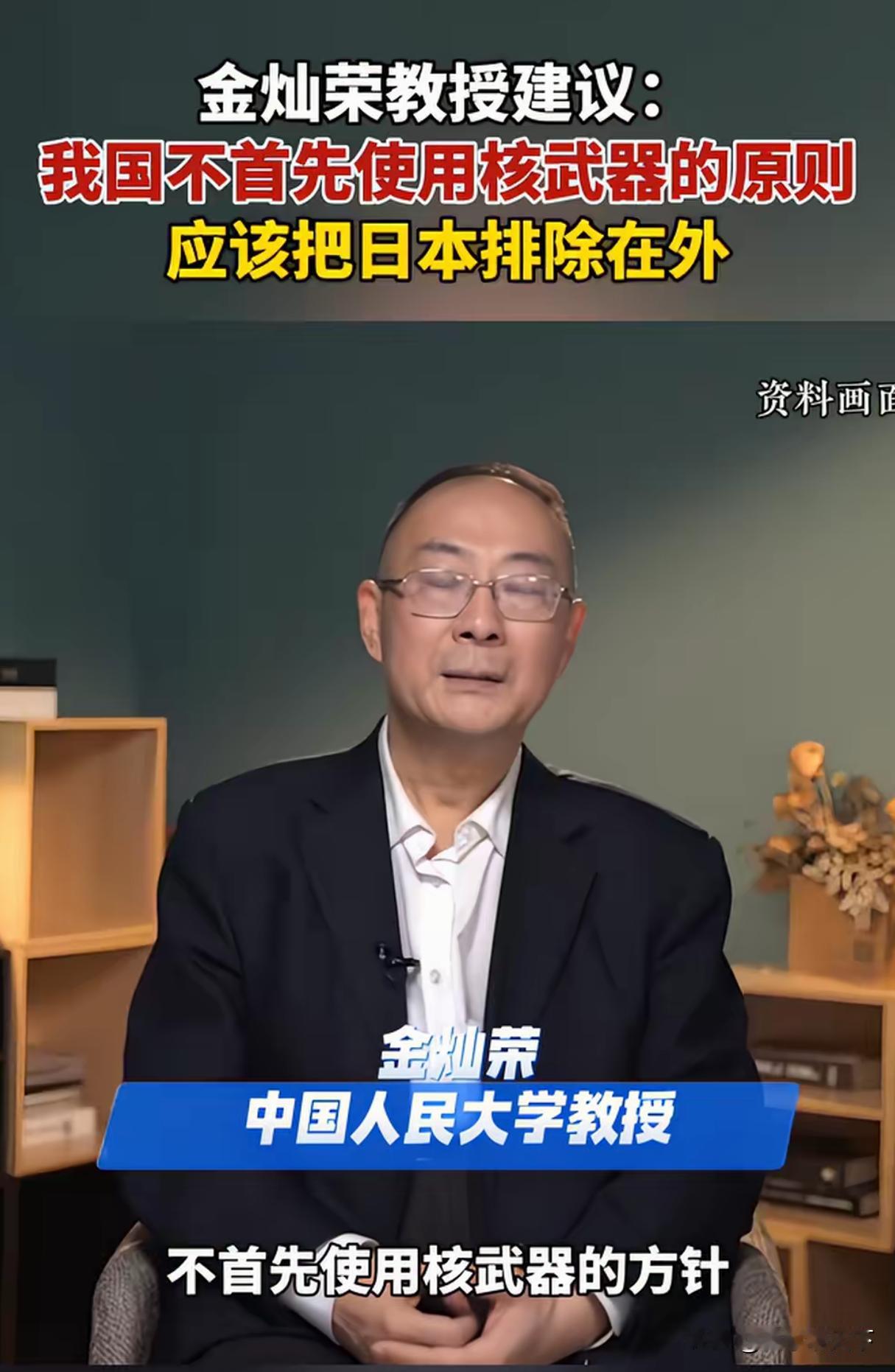 人大金灿荣教授提出,鉴于日本出现再军事化苗头和高市政府在推动放弃无核三原则的背景,中国的不首先使用核武器的原则“应该把日本排除在外”。的确,现在的日本政府公开将台湾问题视为其“生存危机”,如果日本拥有了核武器,不仅会是中国统一的最大阻碍,而且由于军国主义思想的复活而将走向全面对抗中国的道路。因此,中日矛盾已经不仅仅是“台湾有事,日本有事”,而是“日本有事,中国有事,东亚有事”,只有调整“不首先使用核武器”的原则,才有可能让日本回到人类文明的正常轨道上来。