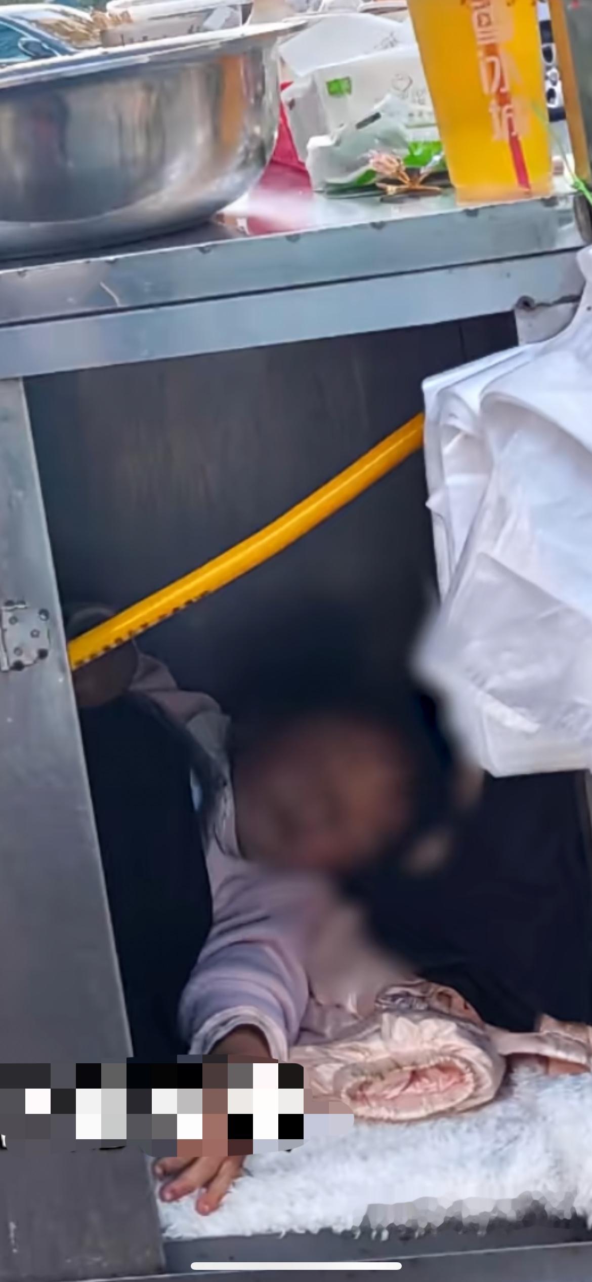 4月17日云南昆明,摆摊10个月了,孩子就在餐车里睡了10个月。妈妈:她爹赌博,然后欠了很多债,我又带娃又没工作,只能带着她摆摊能挣一点是一点,我也心疼孩子,但是跟着我就比跟着她爹强,我不会让她冷着饿着。