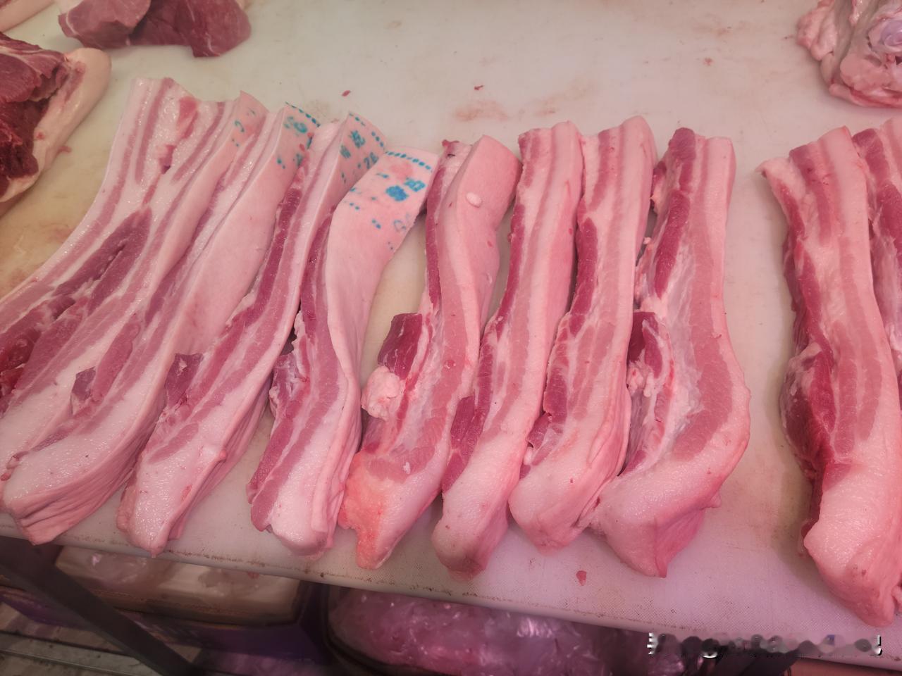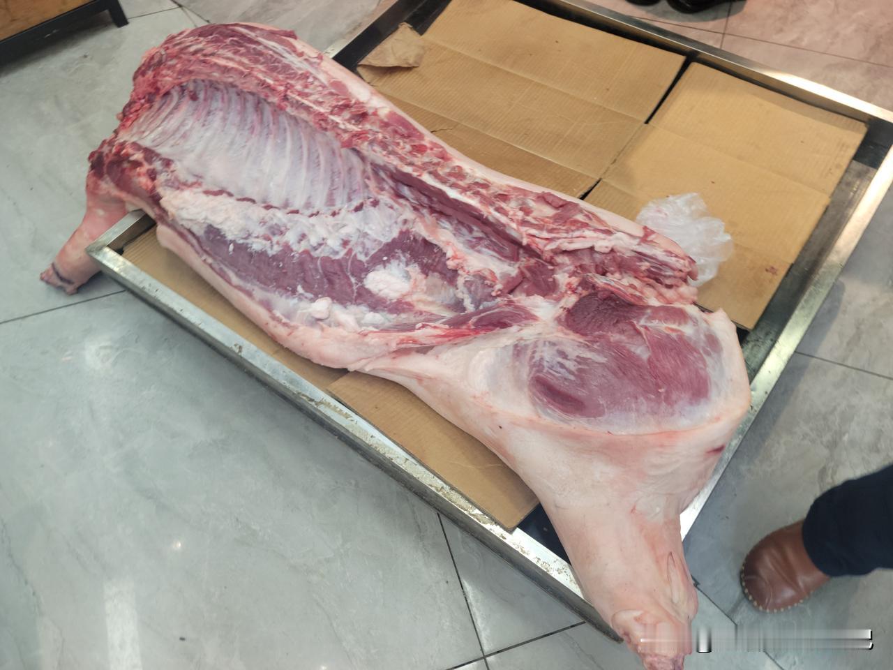 今早去楼下一家水果蔬菜超市,买一把小白菜,想做小豆沫用。看到它家的猪肉很鲜很好,价格也是美丽。 昨天有网友说,我们这里的猪肉这么便宜,是不是冻肉?我们这里人,很少买冻肉吃,也很少有冻猪肉卖,新杀的猪肉都不好卖,谁还吃冻猪肉? 这家超市今天杀的这个猪,看上去很大,来这里买肉的顾客排成了队。 既然猪肉这么便宜,腰条才五块左右,五花肉和后鞧才七八快一斤,排骨也才十块左右,那就多吃点猪肉吧!今年是猪肉自由的一年。