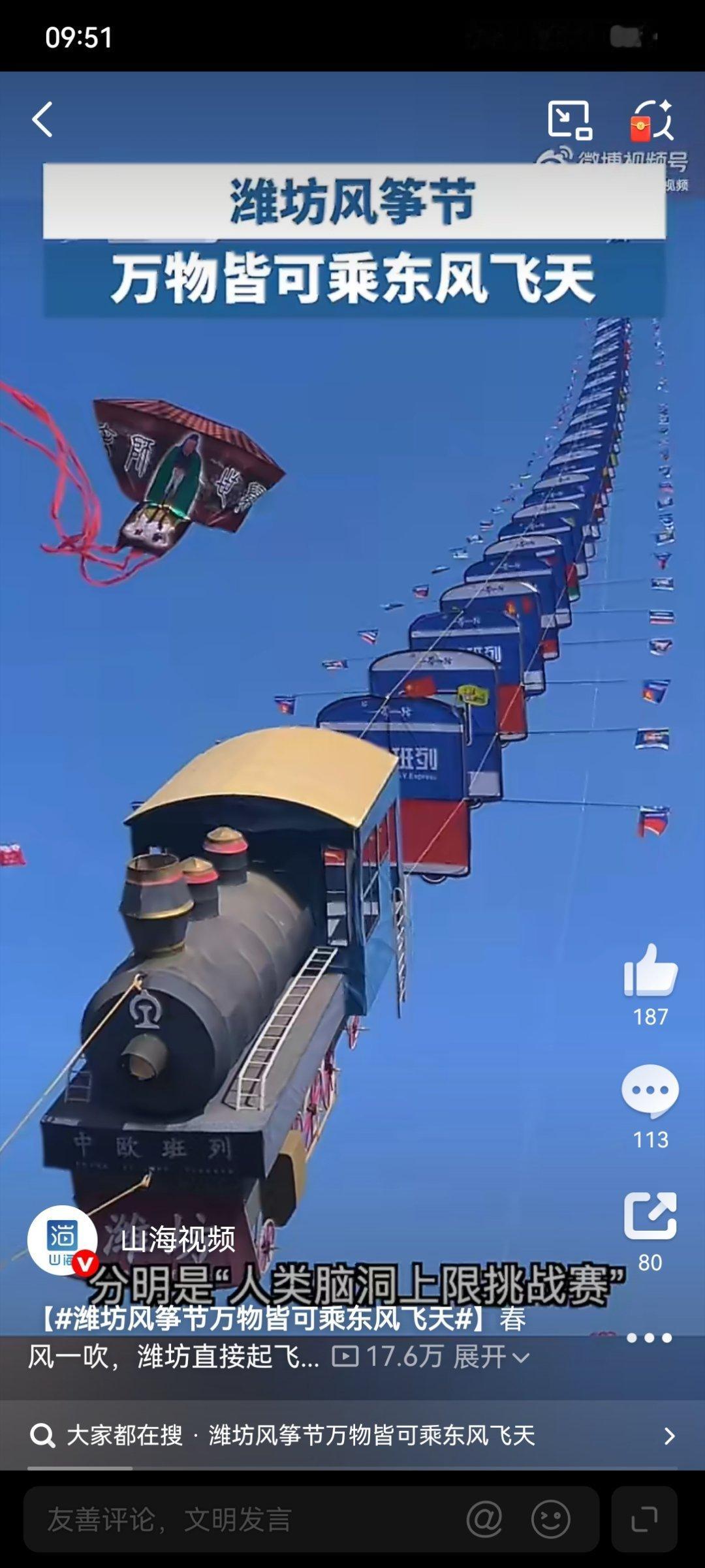 潍坊风筝节万物皆可乘东风飞天潍坊风筝节再次印证:只要脑洞够大,万物皆可乘风。这不仅是一场视觉盛宴,更是民间智慧与非遗技艺的极致碰撞。风筝线牵起的是对蓝天的无限想象,这份敢想敢做的创意,正是生活最动人的烟火气。风筝节没有放不上天的东西