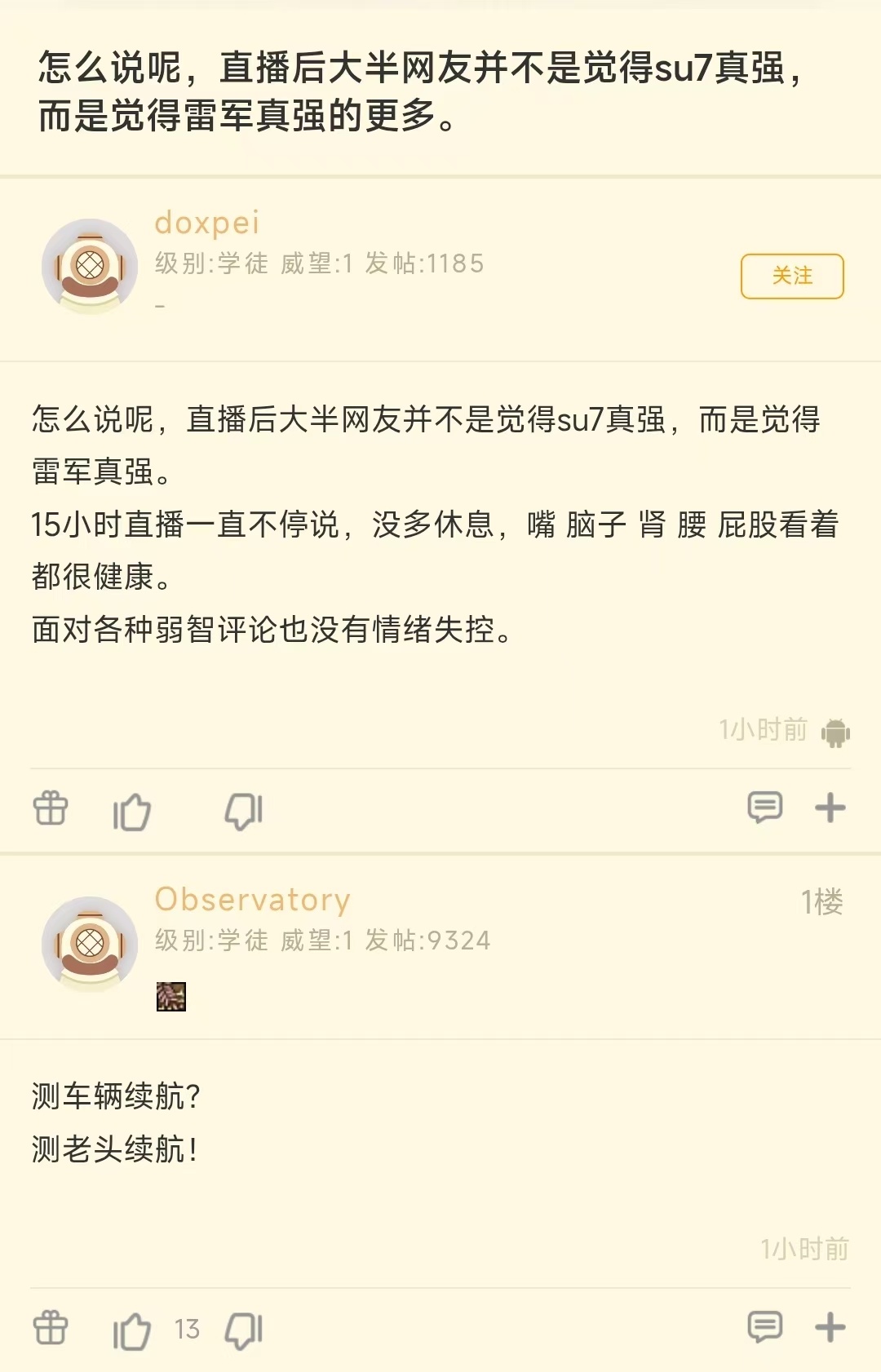 然后这直播我觉得雷总属实厉害,但观众也很厉害。能看完的要么是真爱粉,要么是暗黑粉。