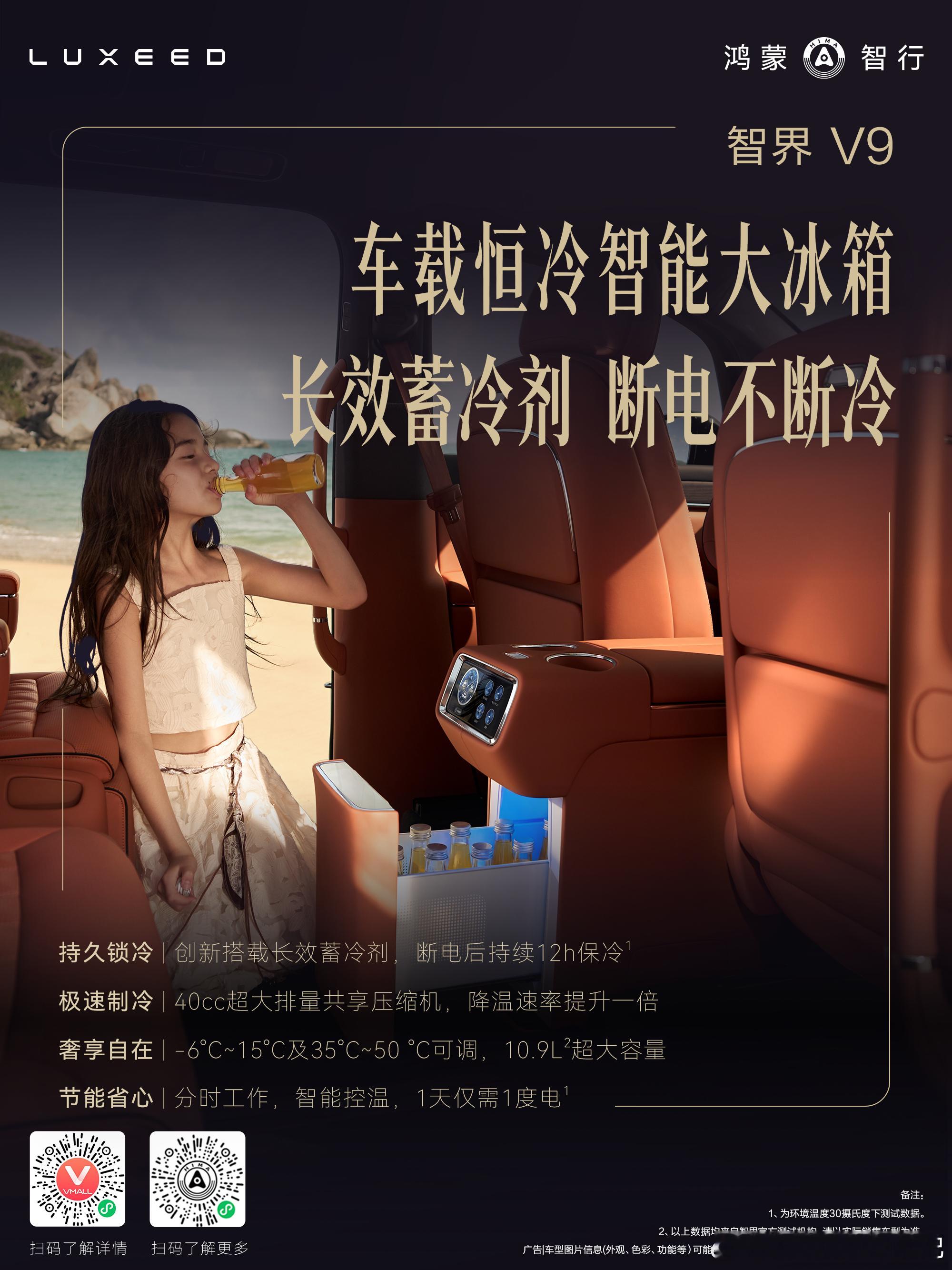 智界v9 首发车载恒冷智能大冰箱,