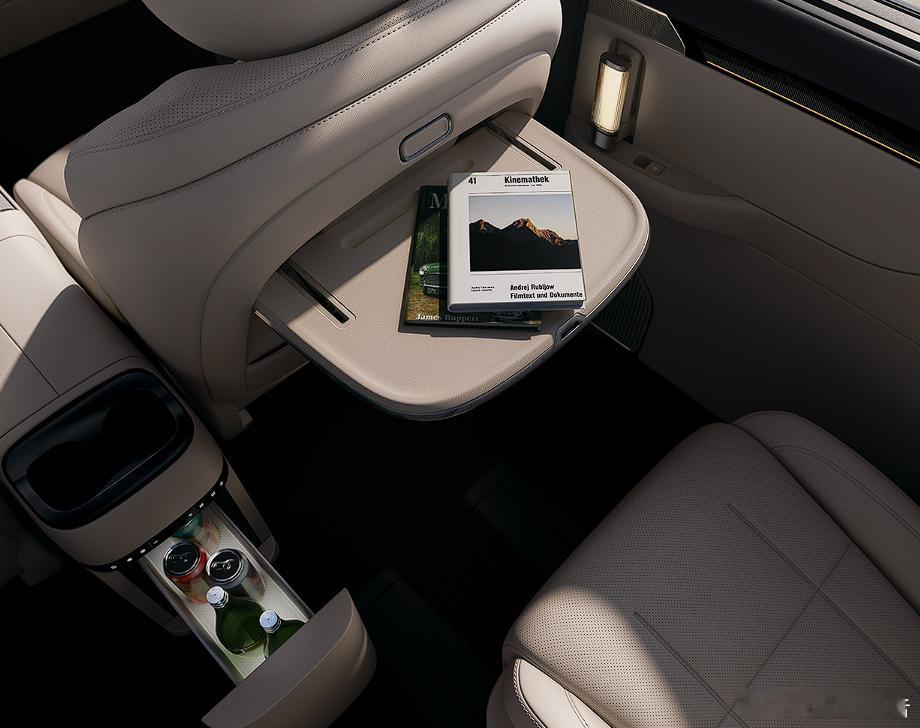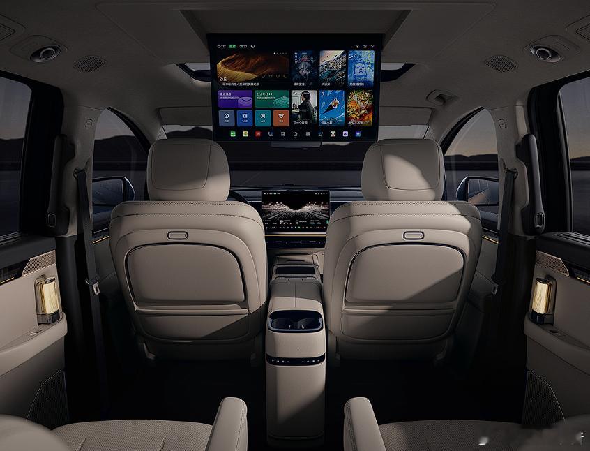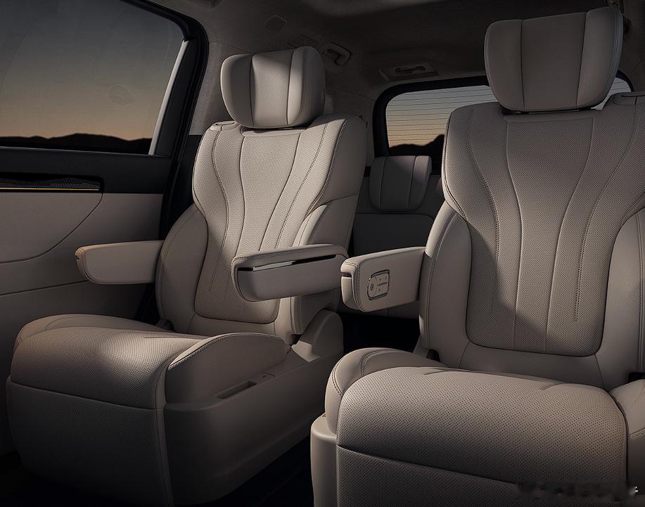内饰方面,全系标配10.25英寸仪表屏与15.6英寸悬浮式中控屏、电子怀档杆,并采用2+2+3的七座布局,其中二排座椅配备通风、加热和按摩功能,还提供小桌板、三温冰箱与17.3英寸后排娱乐屏可选装。