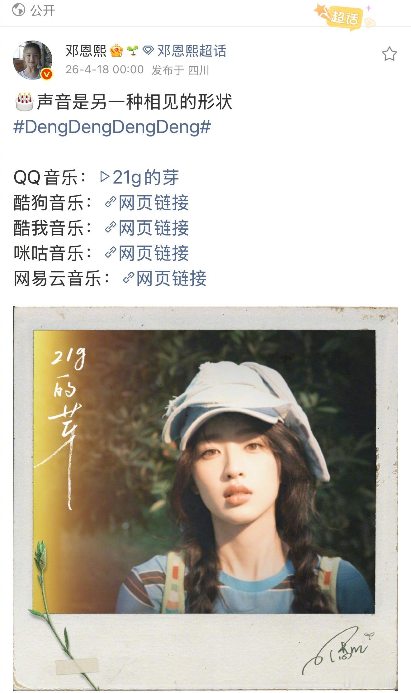 邓恩熙的21岁生日礼物居然是一首自己的歌!21岁的第一支歌,是写给世界的破芽之声,也是写给自己的成长序章,用音乐和世界对话,真的温柔又有力量!从青涩小芽到肆意生长,21岁的她,正带着明亮的色彩,奔赴属于自己的斑斓世界!