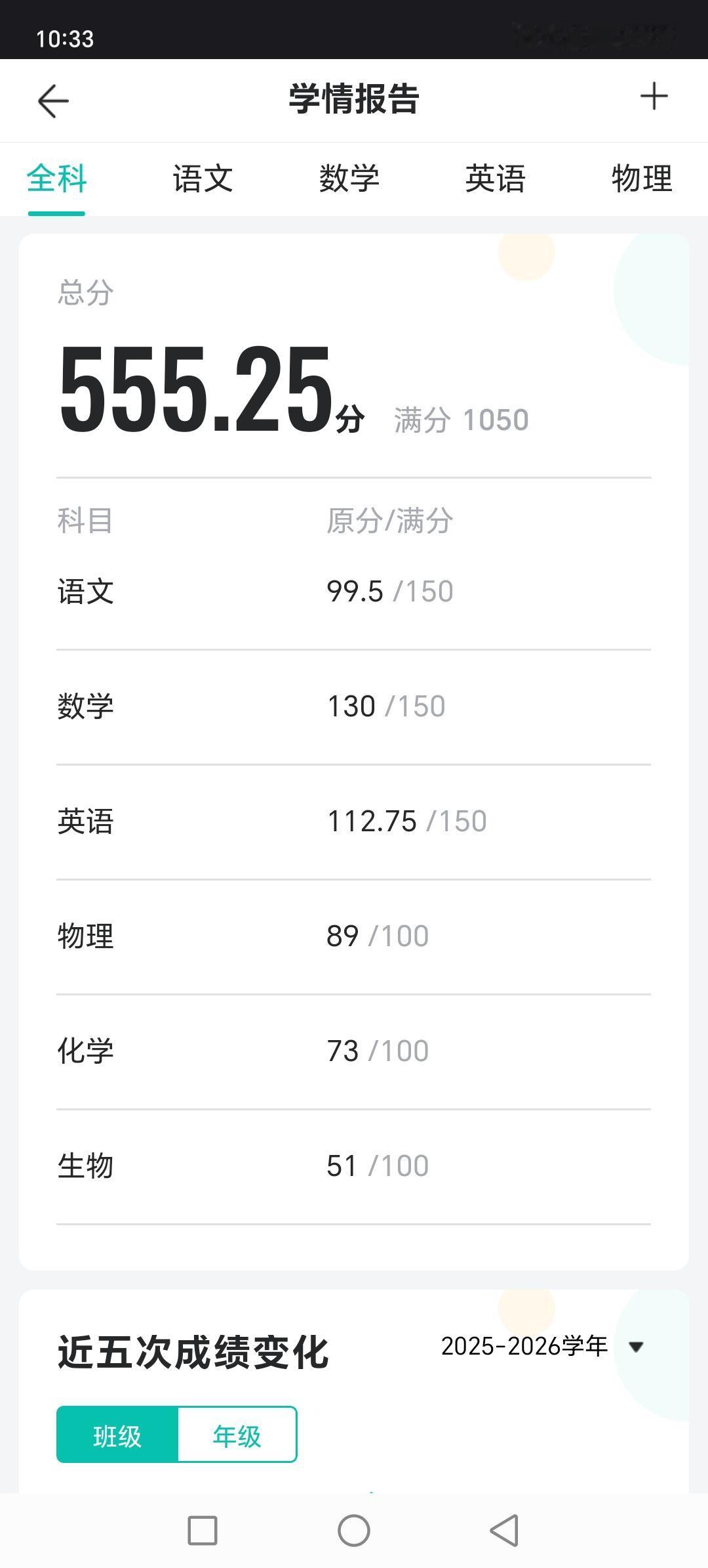 全市第2.5次模拟考试,成绩新鲜出炉,总分555分,裸分,化学,生物没有赋分。生物51分没及格,数学,物理均是优秀,属于A类。感觉下次生物也70多分,赋分后就能达到五百八九。这应该接近高考成绩了,平时一模,二模特别难,有的难哭了,有的又要跳楼喝药,割腕。说明孩子抗压能力太差,不要看分,看名次。分高别人也高,努力吧,还有50天,百尺竿头更进一步,高考一定会考出最好的成绩。