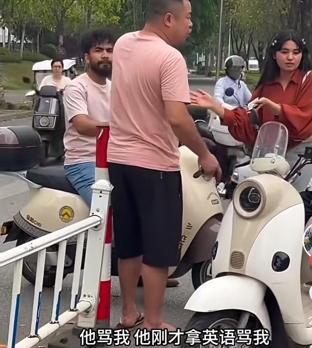 广西,一个外国男子别车还辱华骂人,大哥非常生气,追了他几条街终于把他拦截了,在路口想要给他点教训,但是被路人拦下了,于是开始吐槽这个老外用英语骂人stupid ,应该给他点颜色瞧一瞧 也不知道是哪个国家的,那么没有素质,自己别车了不遵守交通规则还骂人