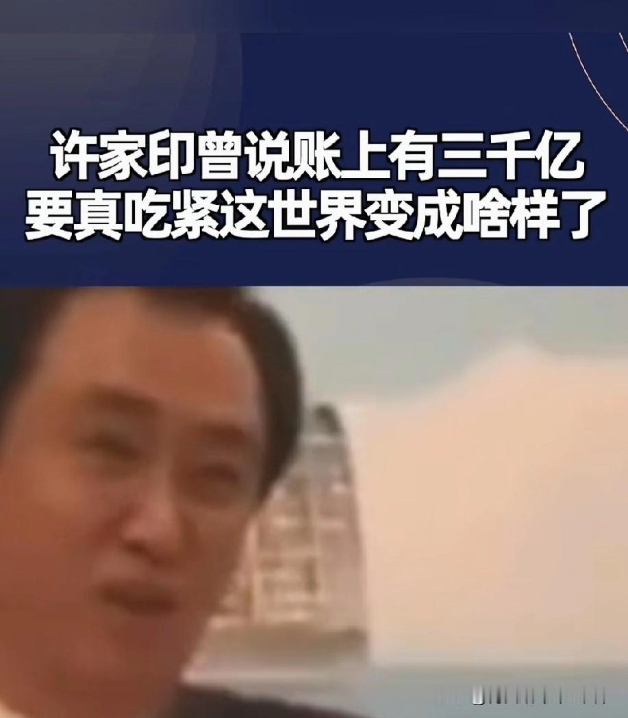 许家印曾说!账上有3000亿现金,资金吃紧?这世界是什么世界? 谁能想到,说出这话的恒大,短短几年就爆发出2.4万亿的惊天债务,账面资金几近枯竭,最终走向清盘。当年被他拿来撑场面的“3000亿”,不过是在高杠杆扩张下,靠借新还旧、财务包装撑起来的虚假繁荣,是被层层债务和表外项目掩盖的数字游戏。 那些被忽悠的投资者、烂尾楼里苦苦等待的业主、拿不到货款的供应商,成了这场资本豪赌的牺牲品。而许家印的这句豪言,也成了企业盲目扩张、财务造假最鲜活的反面教材。资本泡沫吹得再大,终究抵不过真实的窟窿,那些被包装出来的千亿神话,最终都要由无数普通人来买单。