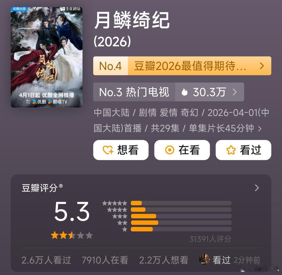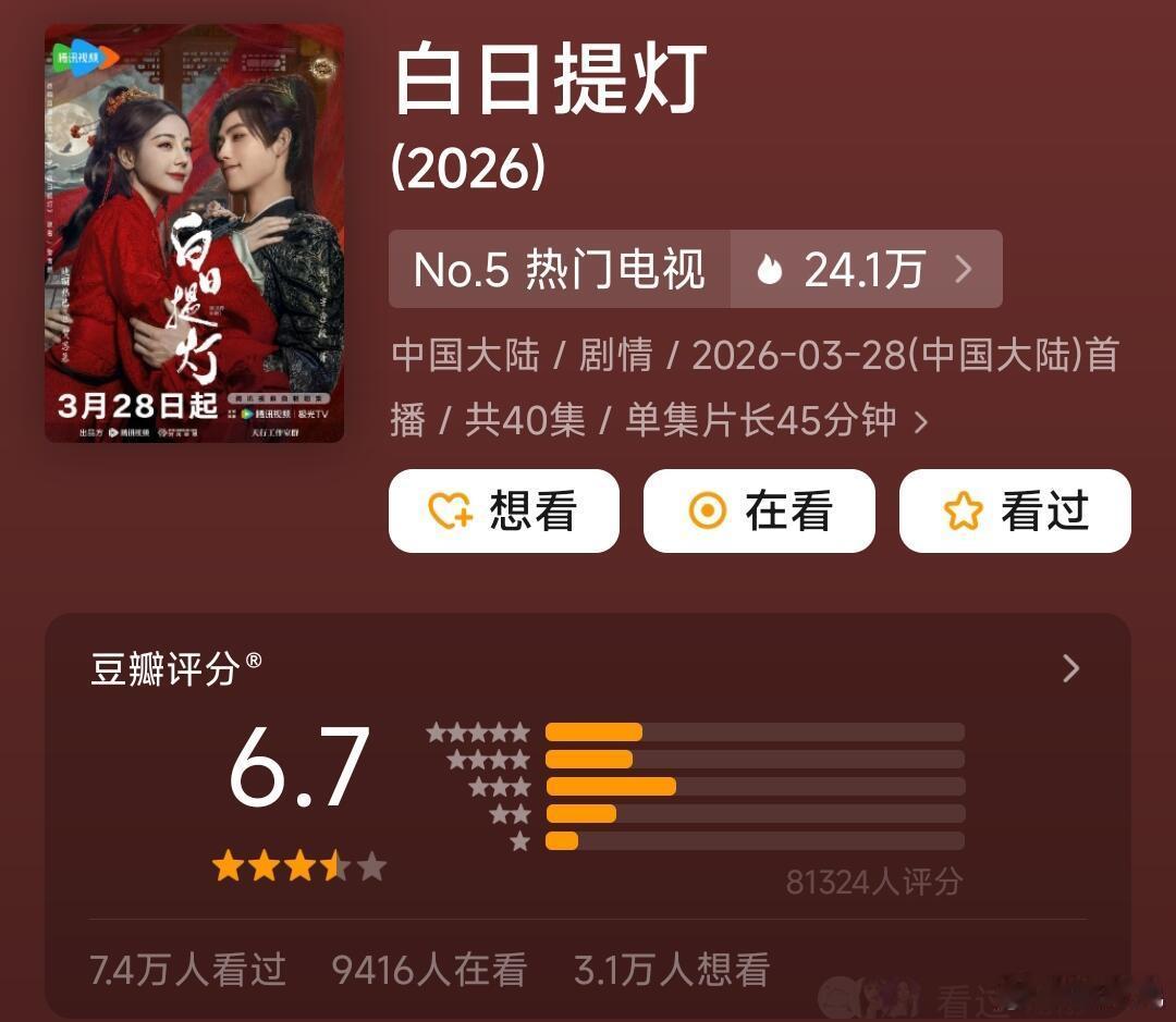 最近在播的三部剧开分了,符合预感嘛?白日提灯6.7分月鳞绮纪5.3分冰湖