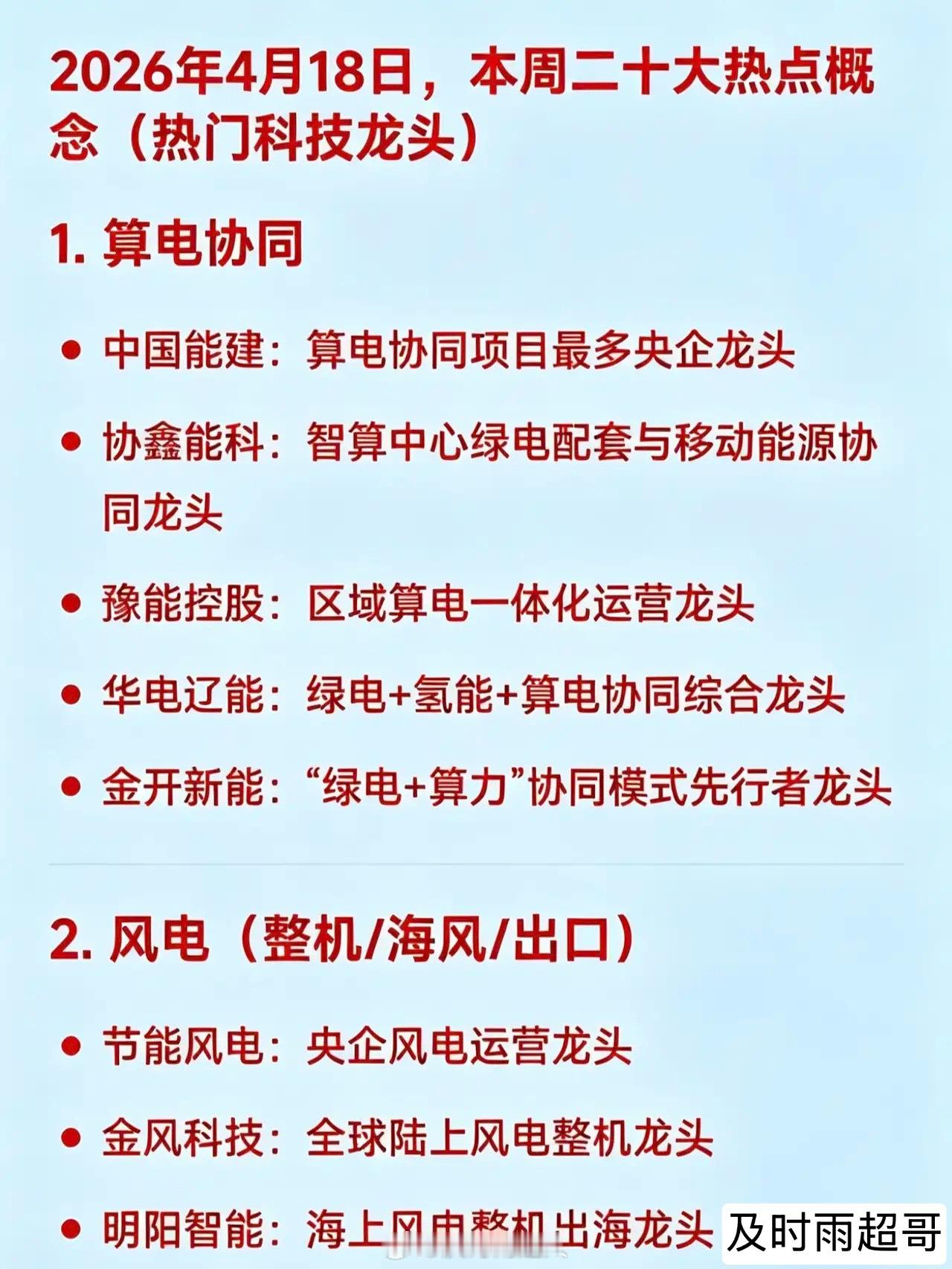 2026年4月18日,本周二十大热点概念(热门科技龙头)