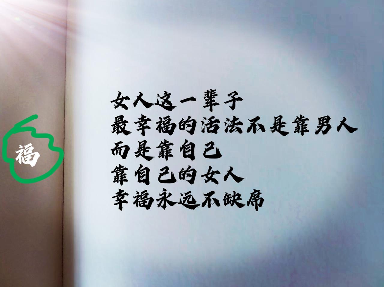 女人这辈子 最幸福的活法不是靠男人 而是靠自己…… 靠男人 人生漫漫长 一开始的时候 也许男人靠得住 但生活不只有爱这件事 每天都会有大大小小的事发生 事情若得不到及时解决 矛盾会越堆越多 最终会爆发 此时 曾经深爱你的男人 会用各种理由和借口 慢慢远离你 此刻 你们说 男人还靠得住吗 靠自己 经济独立,人格独立 方方面面都独立 纵使有一天 男人变心出轨 排山倒海的感觉不会出现 而是稳如泰山 重新出发 下一站 不管过得如何 都有能力让自己幸福起来 这就是靠自己的意义 所以说 女人这一辈子 万事靠自己不靠男人 不靠亲人 也不靠朋友 只靠自己 才是最幸福的活法 各位 赞同吗 世上万事靠自己 人生靠自己语录 女性自我撑腰 女生最好的活法