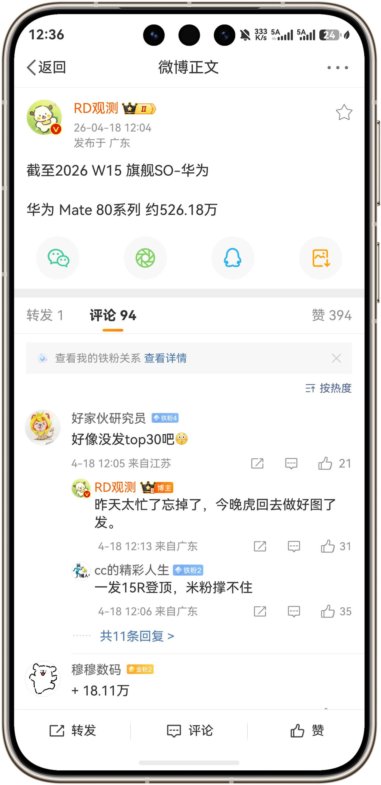 华为Mate 80系列激活量突破526.18万台,新增18+万台,数据还是不错的,出货量的数据只会更好!接下来就是华为的主场,即将发布华为Pura 90系列,Pura X Max,再加上6月份发布Nova 16系列,第三季度的销量会更加好看,我们敬请期待一下吧!
