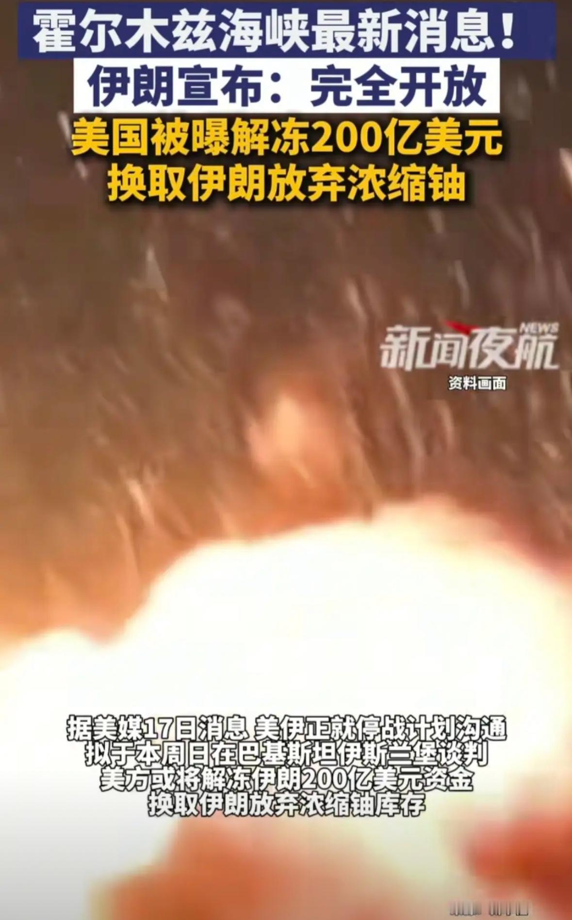 美国用伊朗自己被冻结的钱,买走了伊朗最重要核武器级别浓缩铀库存,并且附带伊朗完全开放霍尔木兹海峡。 这事儿最反常的地方在哪?不是美国“买”了伊朗的浓缩铀,而是这笔买卖的“付款方式”。 特朗普自己说得明明白白:美国不会支付任何款项。那所谓的“买”是怎么回事?用的是伊朗自己的钱——美国准备解冻200亿美元的伊朗被冻结资金,以此为筹码换取伊朗放弃浓缩铀库存。 说白了,这就像有人扣着你的钱,然后用你的钱买你的东西。东西拿走,钱还是你的,但那是你自己本来就有的钱。美国空手套白狼,一分没出,拿走了伊朗接近武器级别的60%纯度浓缩铀。 再说霍尔木兹海峡。伊朗宣布“开放”,听起来像是让步。但伊朗同时开了条件:只有商船能过,军舰不行;必须走伊朗指定的航线;通行还得伊朗批准。这哪是“开放”?这叫“有条件放行”。主动权还在伊朗手里。 特朗普在社交媒体上写“谢谢!”——这位总统什么时候对别人说谢谢这么痛快过?因为他清楚,对外宣布时,“伊朗开放海峡”听起来像是美国赢了。 可另一面,美国对伊朗的海上封锁照旧维持。你开放你的,我封锁我的。两边都在给自己脸上贴金,都在给对方挖坑。 表面上是“交易”,背后是赤裸裸的强权逻辑:你的钱我扣着,你的铀我拿走,你的海峡你“自愿”开放——但所有的条件,都得按我的剧本来写。 只不过,这场戏的下一幕什么时候翻脸,谁也说不准。