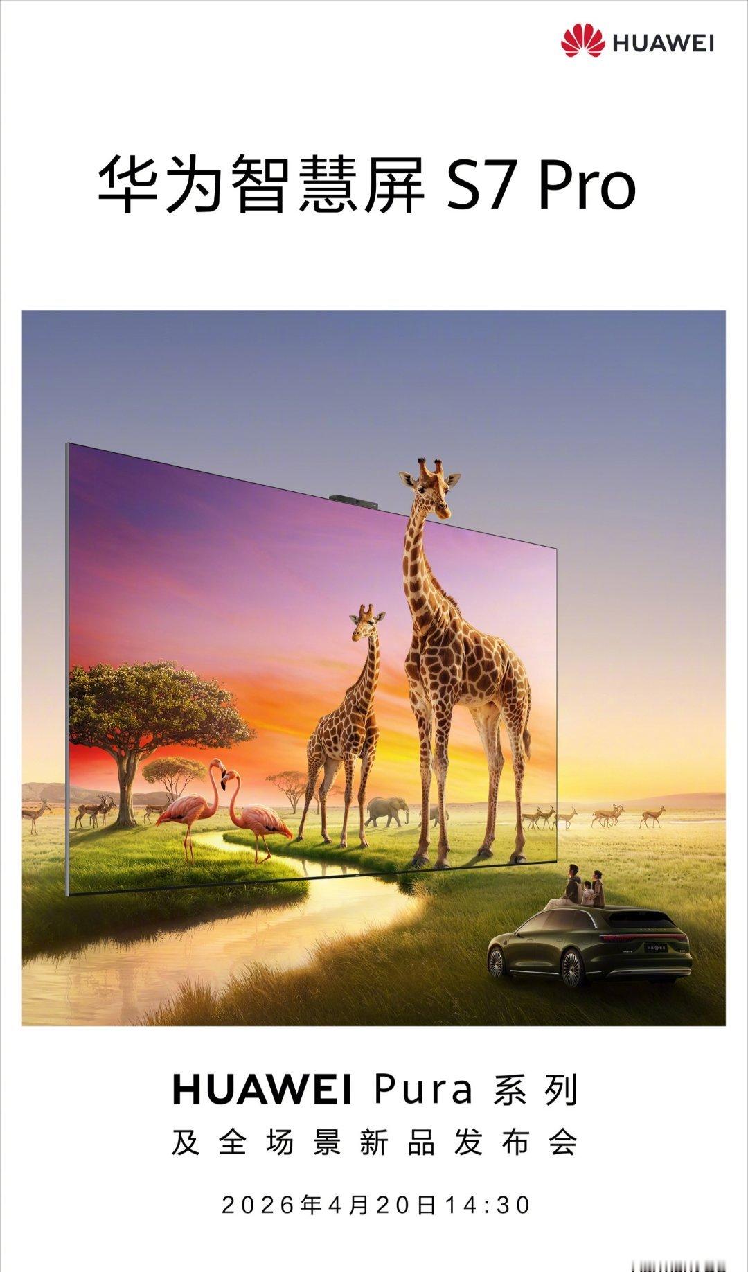 华为官方宣布,华为智慧屏 S7 Pro 将于 4 月 20 日 14:30 举行的华为 Pura 系列及全场景新品发布会上正式发布。